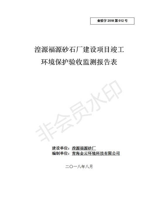 根據(jù)中華人民共和國(guó)國(guó)務(wù)院令第253號(hào)《建設(shè)項(xiàng)目環(huán)境保護(hù)管理?xiàng)l例》(中華人民共和國(guó)國(guó)務(wù)院令第682號(hào)《國(guó)務(wù)院關(guān)于修改〈建設(shè)項(xiàng)目環(huán)境保護(hù)管理?xiàng)l例〉的決定》和《建設(shè)項(xiàng)目竣工環(huán)境保護(hù)驗(yàn)收暫行辦法》,嚴(yán)格依照有關(guān)法律法規(guī),建設(shè)項(xiàng)目環(huán)境保護(hù)設(shè)施驗(yàn)收技術(shù)規(guī)范,本項(xiàng)目環(huán)評(píng)報(bào)告表和環(huán)保審批部門審批意見以及企業(yè)自行驗(yàn)收相關(guān)要求等對(duì)本項(xiàng)目進(jìn)行驗(yàn)收,本項(xiàng)目符合環(huán)保驗(yàn)收條件,可以通過環(huán)保驗(yàn)收。 湟源福砂廠建設(shè)項(xiàng)目竣工環(huán)境保護(hù)驗(yàn)收意見