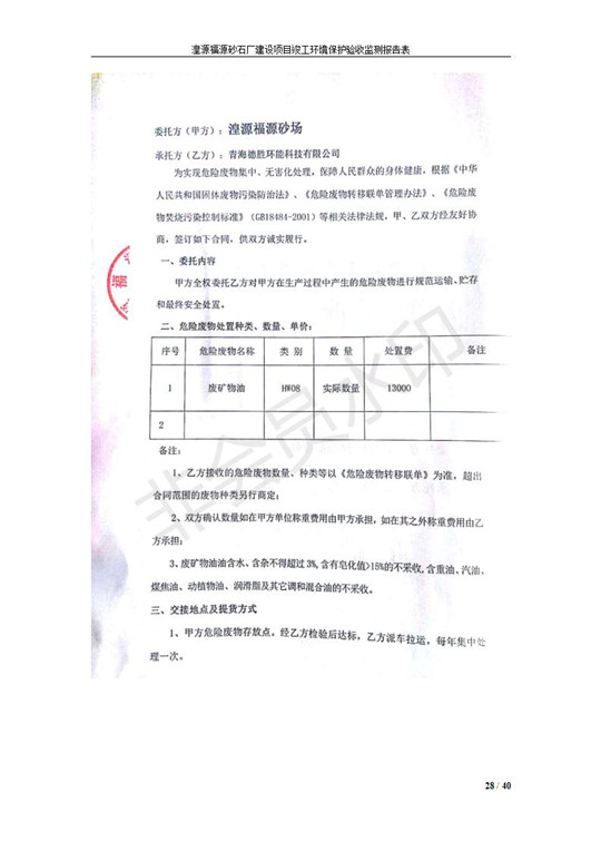 湟源福砂廠建設(shè)項(xiàng)目竣工環(huán)境保護(hù)驗(yàn)收發(fā)布日期:(2018-9-6) 點(diǎn)擊次數(shù):2006 |