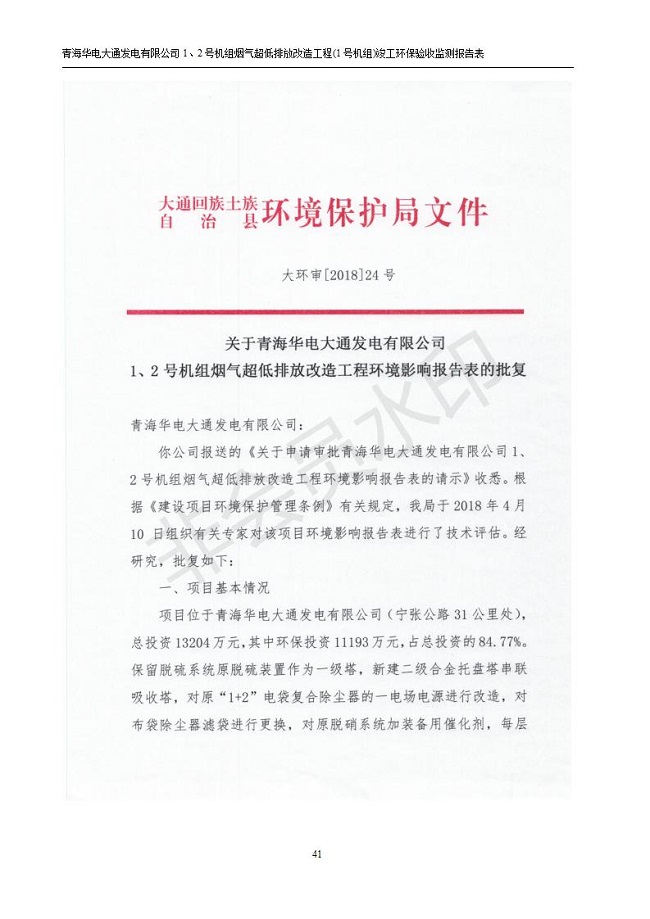 根據(jù)中華人民共和國(guó)國(guó)務(wù)院令第682號(hào)《國(guó)務(wù)院關(guān)于修改〈建設(shè)項(xiàng)目環(huán)境保護(hù)管理?xiàng)l例〉的決定》和《建設(shè)項(xiàng)目竣工環(huán)境保護(hù)驗(yàn)收暫行辦法》(國(guó)務(wù)院令682號(hào)),青海華電大通發(fā)電有限公司1、2號(hào)機(jī)組煙氣超低排放改造工程(1號(hào)機(jī)組) (包括竣工環(huán)境保護(hù)驗(yàn)收監(jiān)測(cè)報(bào)告表和驗(yàn)收意見)公示如下。 一、項(xiàng)目名稱:青海華電大通發(fā)電有限公司1、2號(hào)機(jī)組煙氣超低排放改造工程(1號(hào)機(jī)組) 竣工環(huán)境保護(hù)驗(yàn)收監(jiān)測(cè)報(bào)告表 二、地點(diǎn):青海省西寧市大通縣寧張公路31公里處 三、建設(shè)單位:青海華電大通發(fā)電有限公司 四、建設(shè)內(nèi)容:1號(hào)機(jī)組煙氣超低排放改造,1號(hào)機(jī)組改造內(nèi)容為脫硫系統(tǒng)保留原脫硫裝置作為一級(jí)塔,新建二級(jí)合金托盤塔串聯(lián)吸收塔;對(duì)原“1+2”電袋復(fù)合除塵器的一電場(chǎng)電源進(jìn)行改造,對(duì)布袋除塵器濾袋進(jìn)行更換;對(duì)原脫硝系統(tǒng)選擇性催化還原法(SCR)脫硝工藝加裝備用催化劑,每層催化劑增加聲波吹灰器,優(yōu)化SCR反應(yīng)器入口導(dǎo)流板。 五、聯(lián)系人:張工 六、聯(lián)系電 話:0971-6515411 七、公示時(shí)間:二〇一九年二月十三日至二〇一九年三月十二日 公示期間,對(duì)上述公示內(nèi)容如有異議,請(qǐng)以書面形式反饋,個(gè)人須署真實(shí)姓名,單位須加蓋公章。