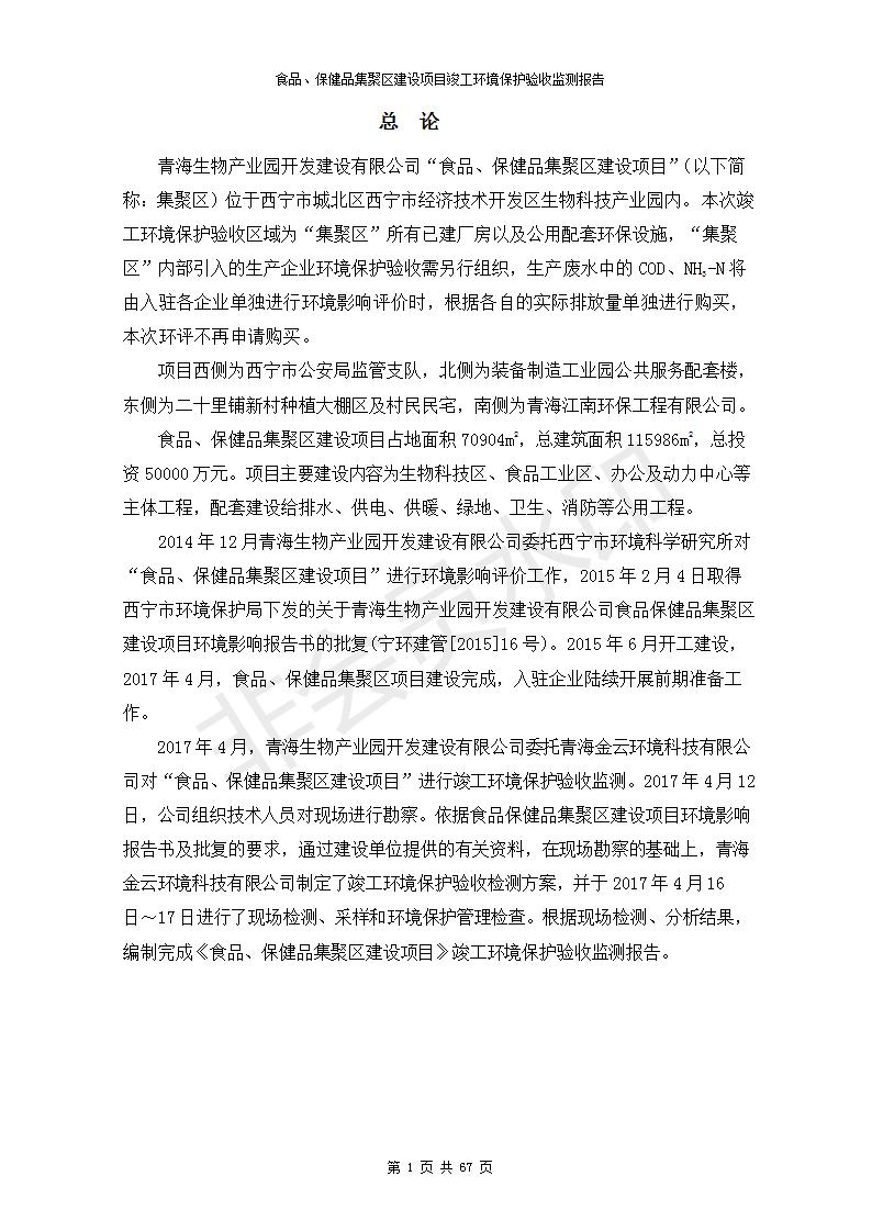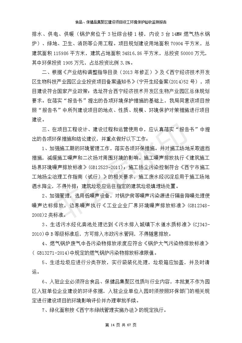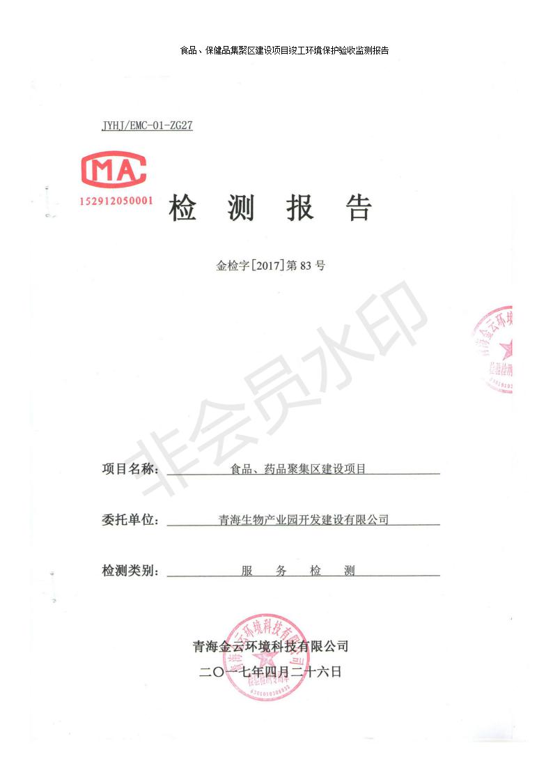 食品、保健品集聚區(qū)建設(shè)項(xiàng)目竣工環(huán)境保護(hù)驗(yàn)收監(jiān)測(cè)報(bào)告公示發(fā)布日期:(2019-3-11) 點(diǎn)擊次數(shù):2014 |