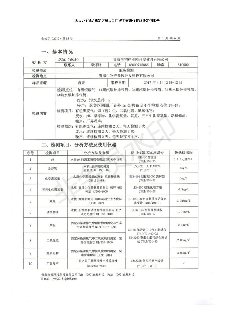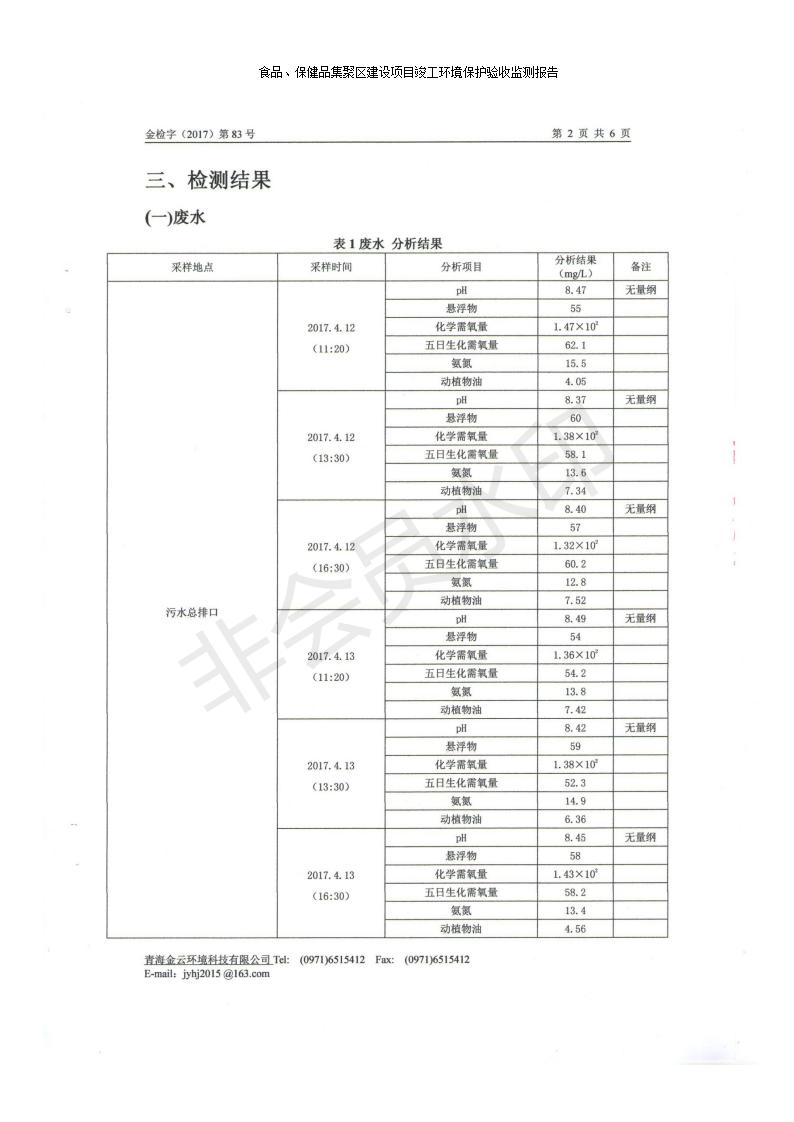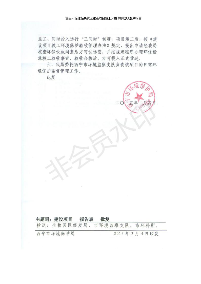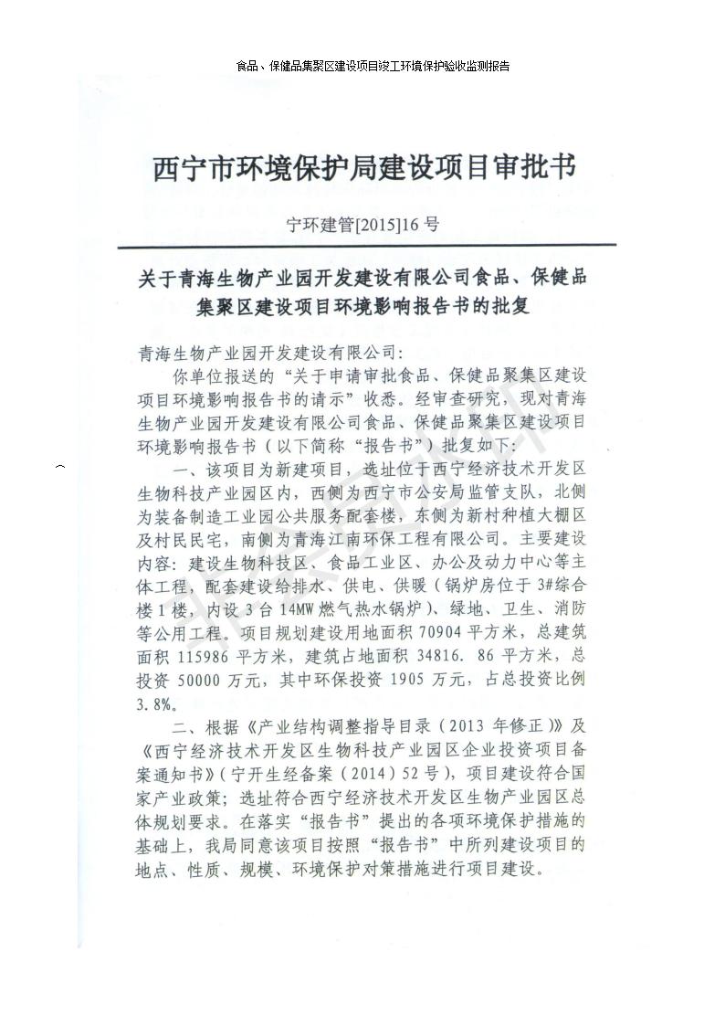 食品、保健品集聚區(qū)建設(shè)項(xiàng)目竣工環(huán)境保護(hù)驗(yàn)收監(jiān)測(cè)報(bào)告公示發(fā)布日期:(2019-3-11) 點(diǎn)擊次數(shù):2014 |