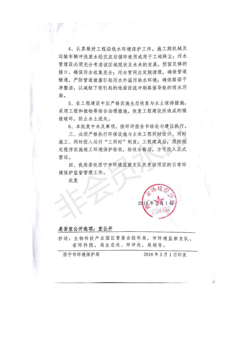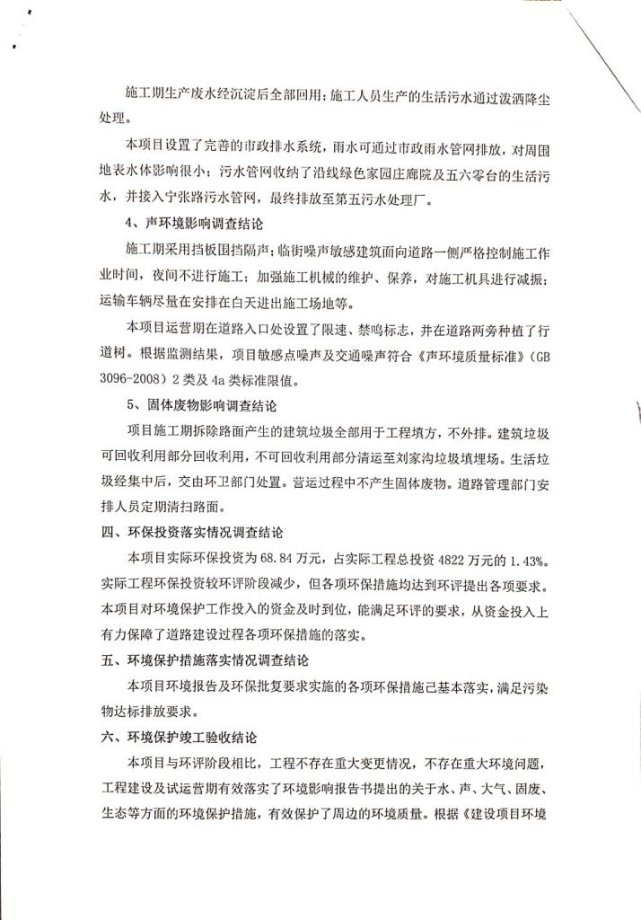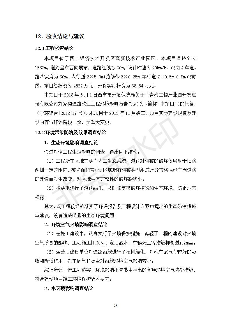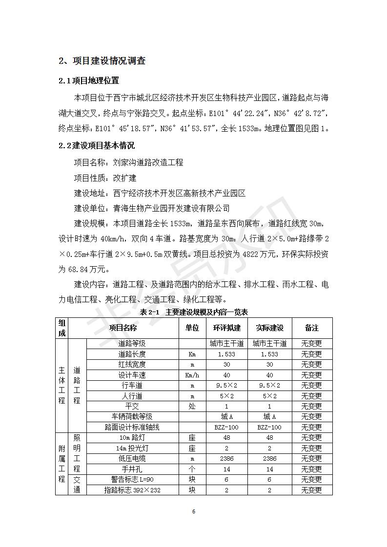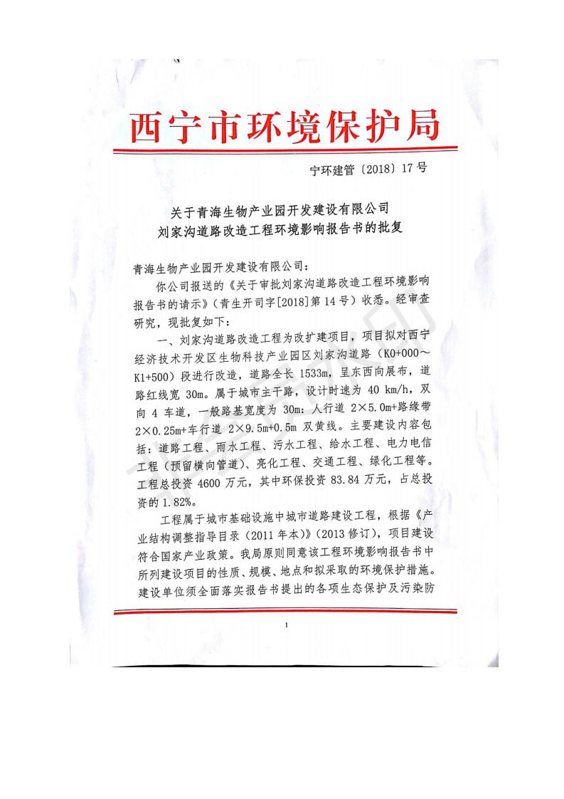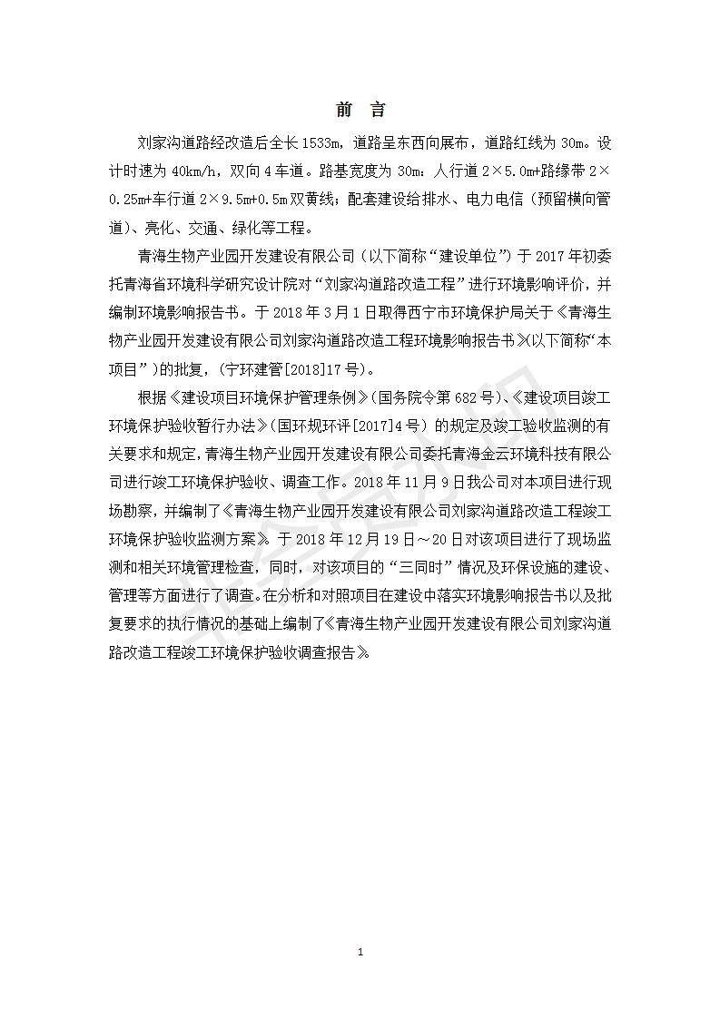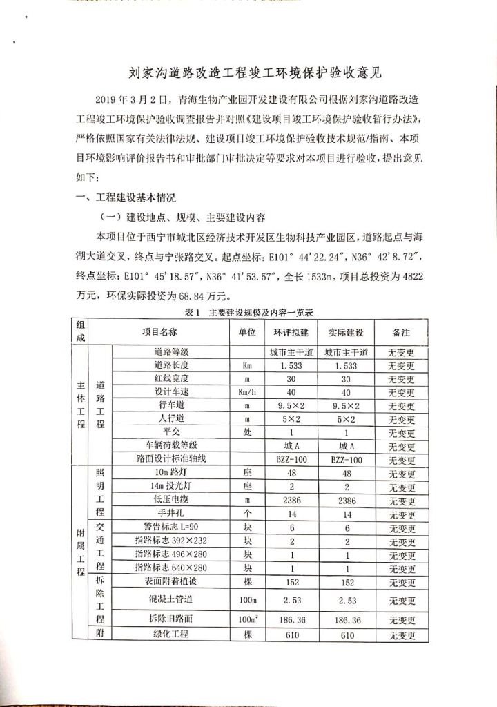 根據(jù)中華人民共和國(guó)務(wù)院令第682號(hào)《國(guó)務(wù)院關(guān)于修改〈建設(shè)項(xiàng)目環(huán)境保護(hù)管理?xiàng)l例〉的決定》和《建設(shè)項(xiàng)目竣工環(huán)境保護(hù)驗(yàn)收暫行辦法》(國(guó)務(wù)院令682號(hào)),劉家溝道路改造工程竣工環(huán)境保護(hù)驗(yàn)收內(nèi)容(包括竣工環(huán)境保護(hù)驗(yàn)收調(diào)查報(bào)告和驗(yàn)收意見(jiàn))公示如下: 一、項(xiàng)目名稱(chēng):劉家溝道路改造工程 二、地點(diǎn):青海省西寧市城北區(qū)生物園區(qū) 三、建設(shè)單位:生物產(chǎn)業(yè)園開(kāi)發(fā)建設(shè)有限公司 四、建設(shè)內(nèi)容:劉家溝道路經(jīng)改造后全長(zhǎng)1533m,道路呈東西向展布,道路紅線(xiàn)為30m。設(shè)計(jì)時(shí)速為40km/h,雙向4車(chē)道。 五、公示時(shí)間:二〇一九年三月十四日至二〇一九年四月十一日 六、聯(lián)系人:張工 公示期間,對(duì)上述公示內(nèi)容如有異議,請(qǐng)以書(shū)面形式反饋,個(gè)人須署真實(shí)姓名,單位須加蓋公章。