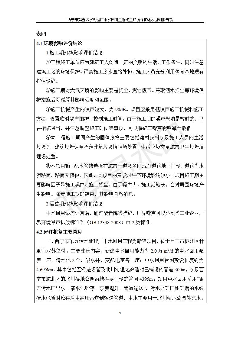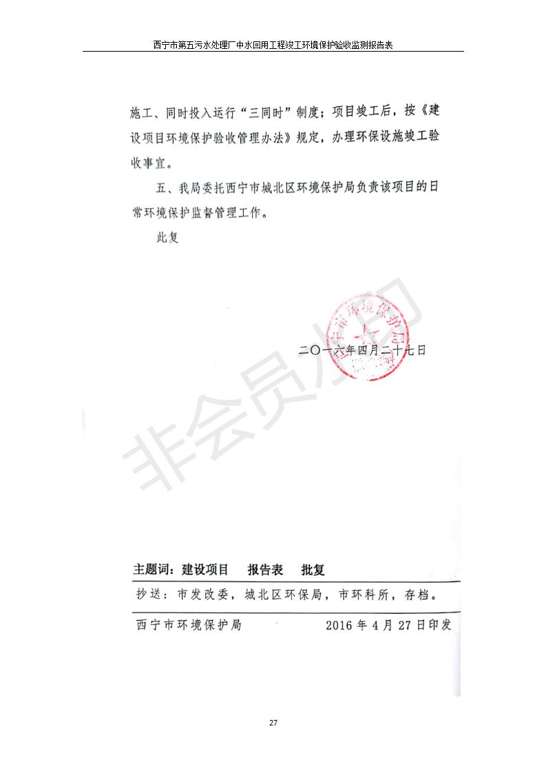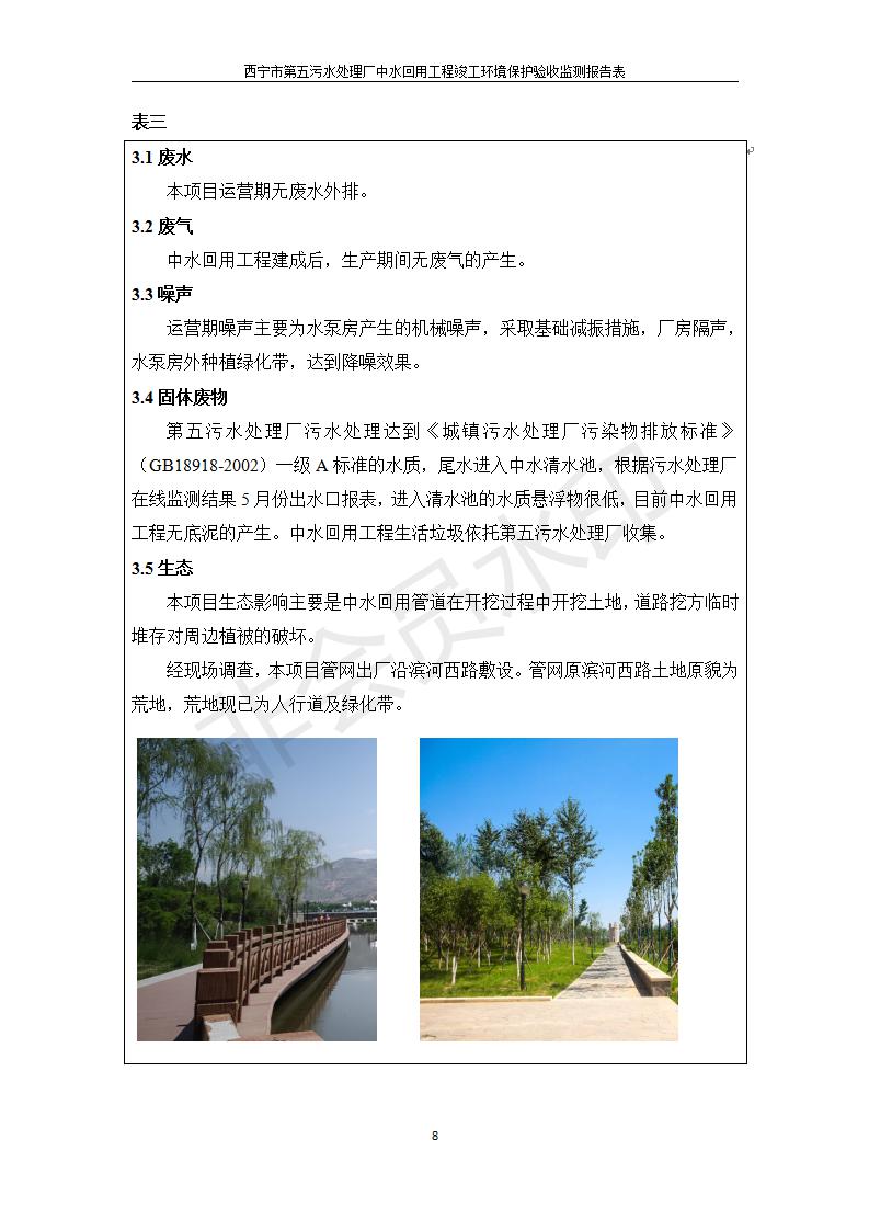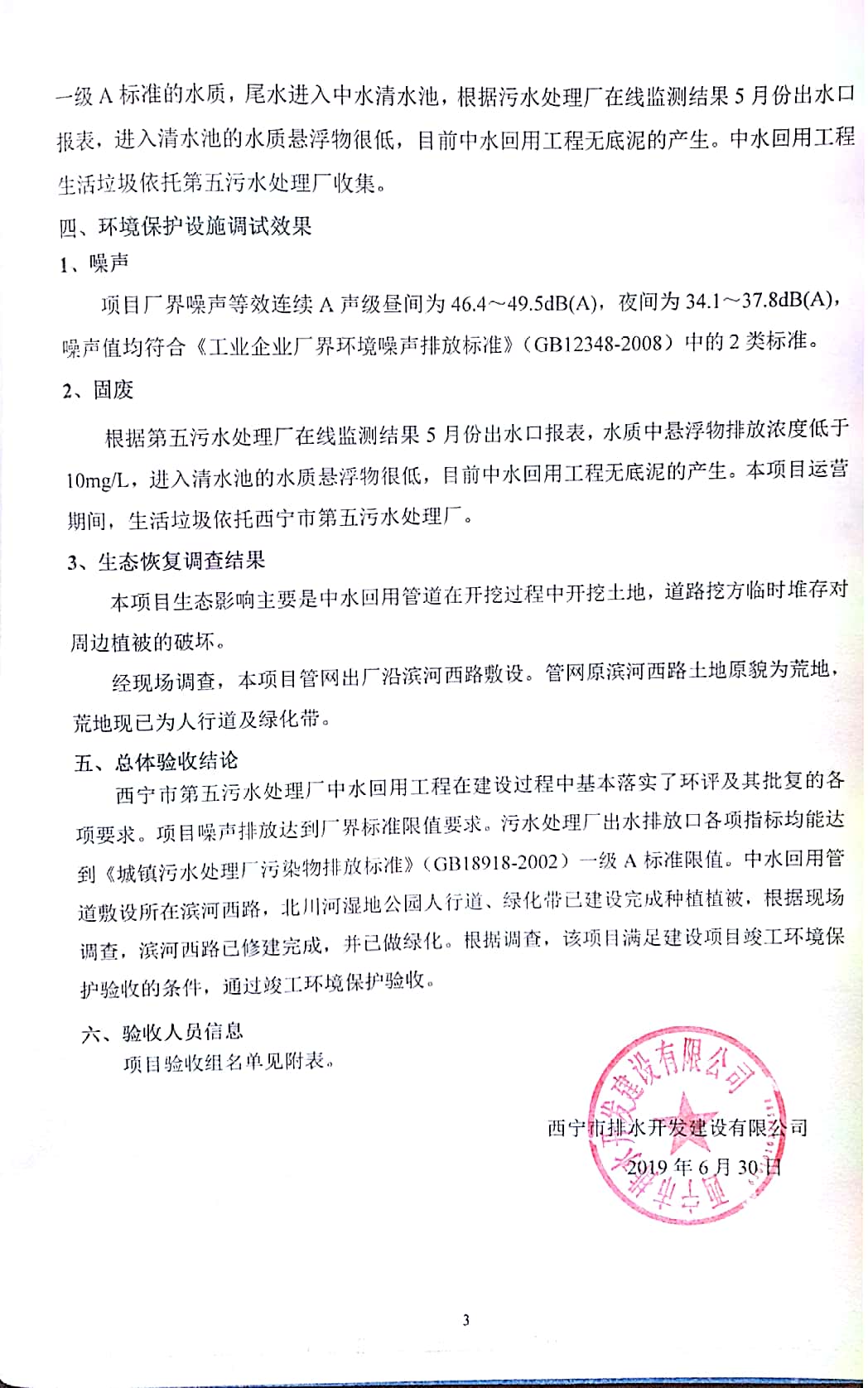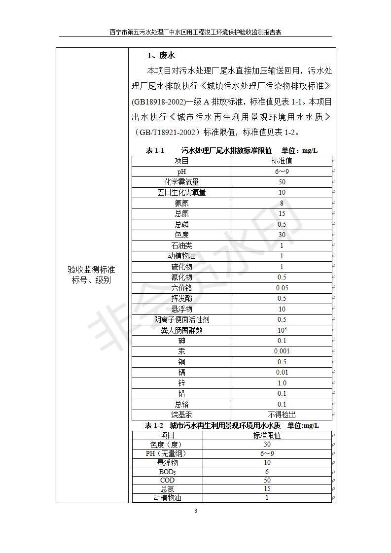 根據(jù)中華人民共和國國務院令第682號《國務院關(guān)于修改〈建設(shè)項目環(huán)境保護管理條例〉的決定》和《建設(shè)項目竣工環(huán)境保護驗收暫行辦法》(國務院令682號),西寧市第五污水處理廠中水回用工程建設(shè)項目(包括竣工環(huán)境保護驗收監(jiān)測報告表和驗收意見)公示如下。 一、項目名稱:西寧市第五污水處理廠中水回用工程建設(shè)項目 二、地點:西寧市城北區(qū)廿十里鋪雙蘇堡 三、建設(shè)單位:西寧市排水開發(fā)建設(shè)有限公司