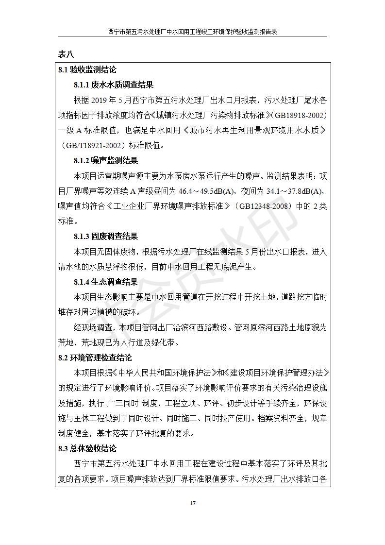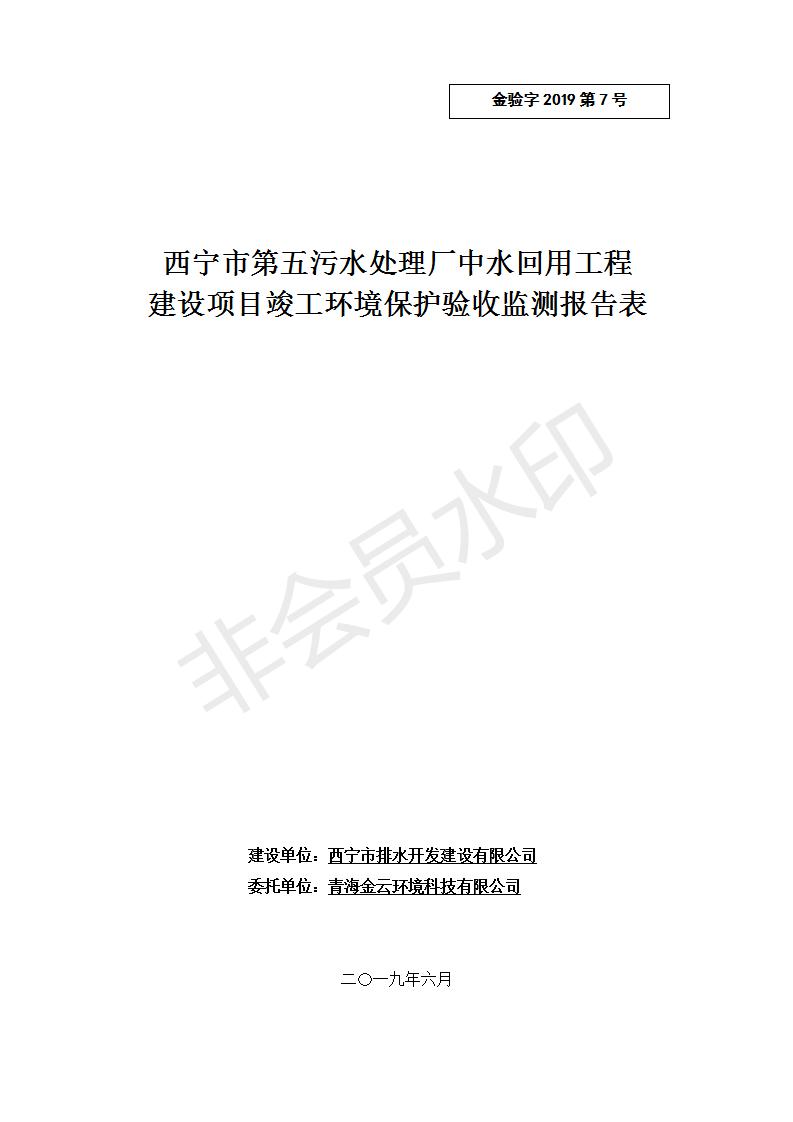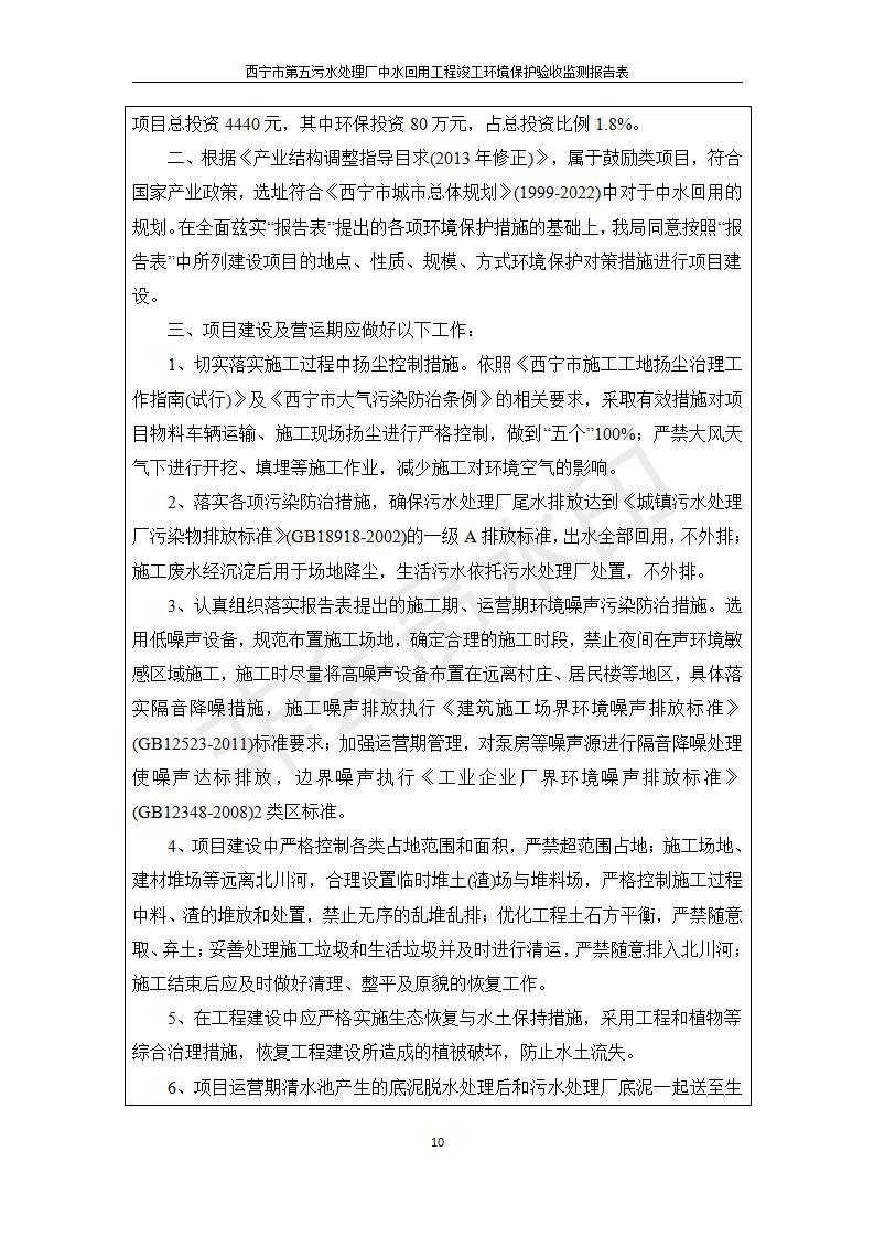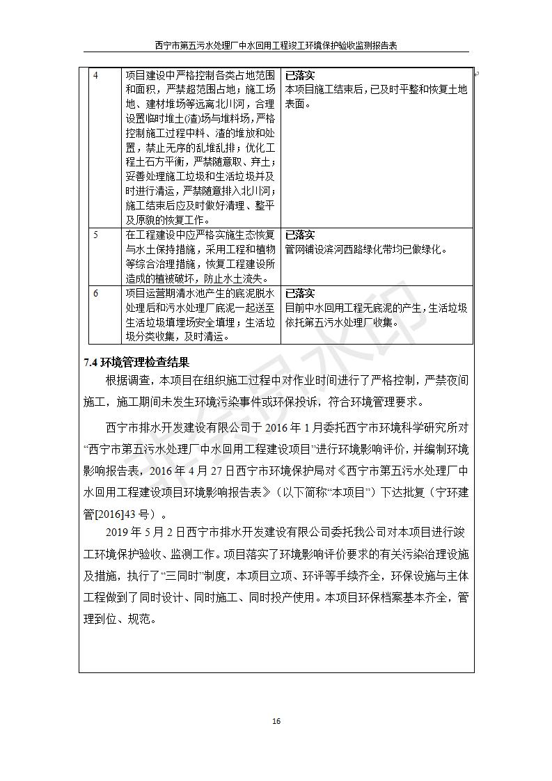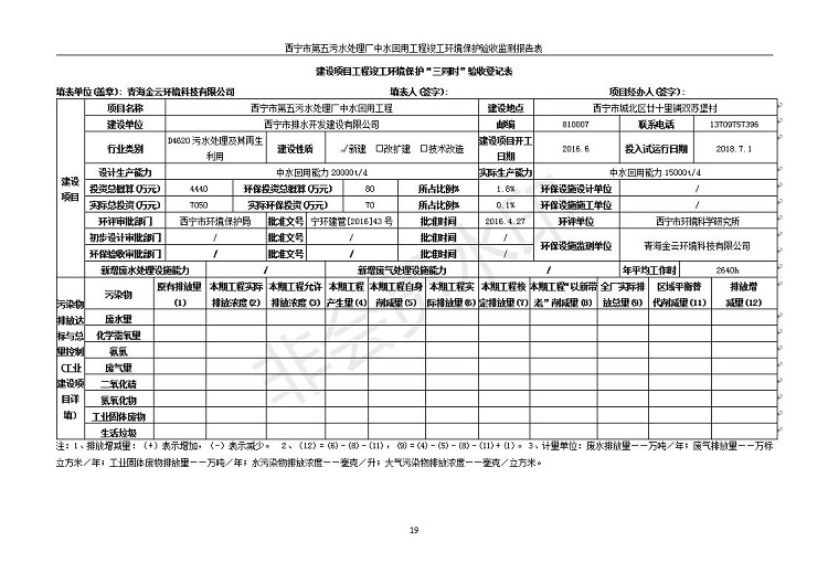 西寧市第五污水處理廠中水回用工程建設(shè)項目竣工環(huán)境保護驗收監(jiān)測報告表公示發(fā)布日期:(2019-7-10) 點擊次數(shù):2241 |