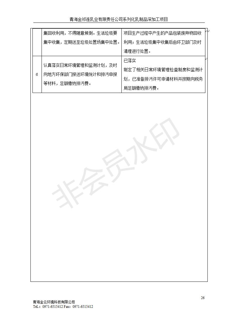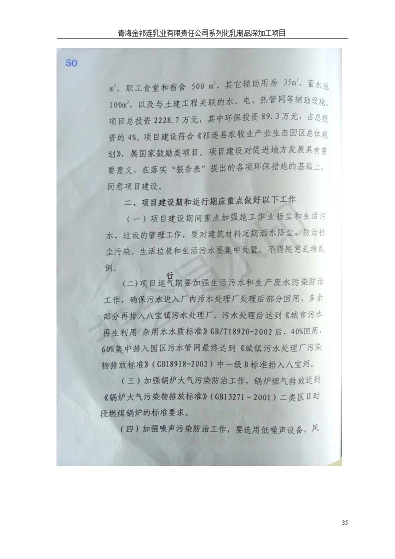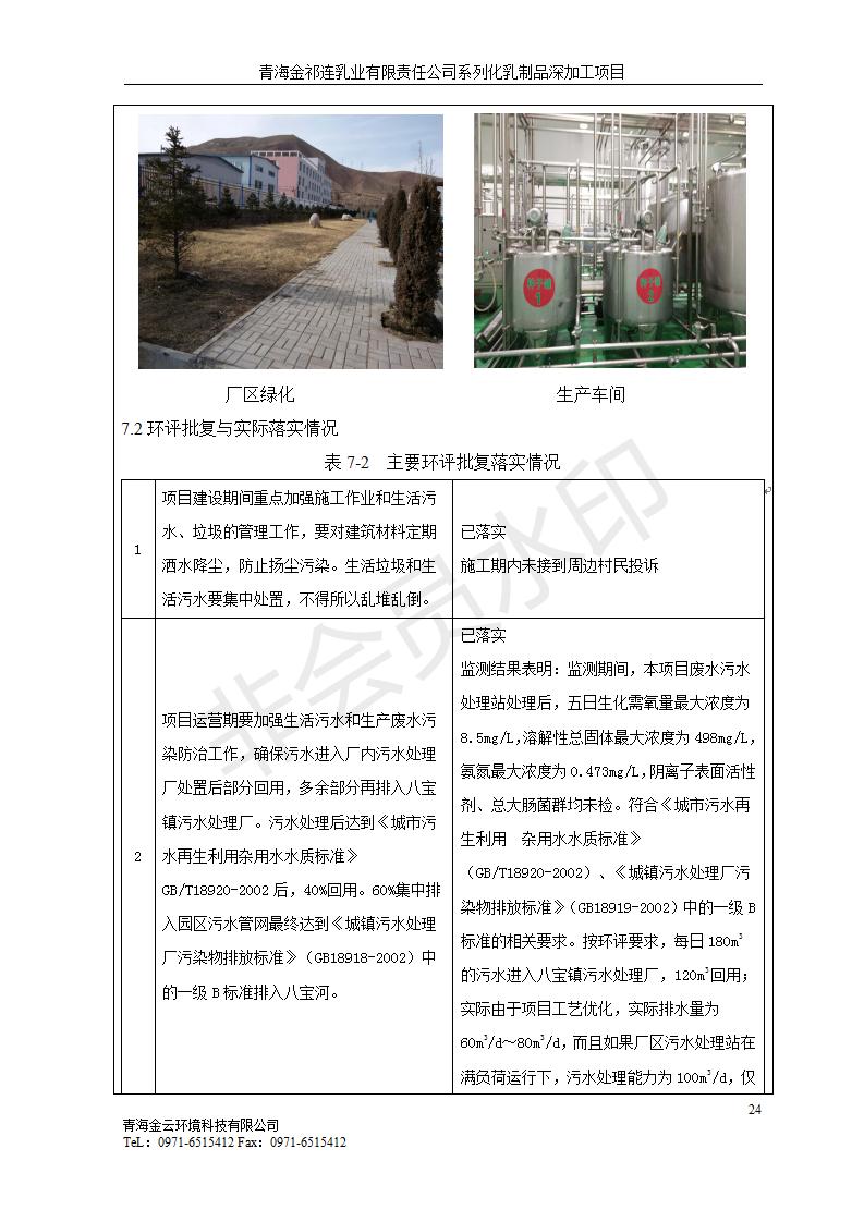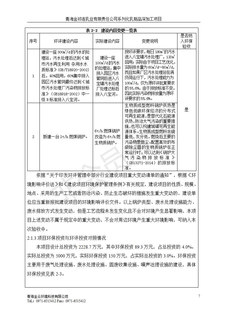 根據(jù)中華人民共和國(guó)國(guó)務(wù)院令第682號(hào)《國(guó)務(wù)院關(guān)于修改〈建設(shè)項(xiàng)目環(huán)境保護(hù)管理?xiàng)l例〉的決定》和《建設(shè)項(xiàng)目竣工環(huán)境保護(hù)驗(yàn)收暫行辦法》(國(guó)務(wù)院令682號(hào)),青海金祁連乳業(yè)有限責(zé)任公司系列化乳制品深加工項(xiàng)目(包括竣工環(huán)境保護(hù)驗(yàn)收監(jiān)測(cè)報(bào)告表和驗(yàn)收意見(jiàn))公示如下。 一、項(xiàng)目名稱:青海金祁連乳業(yè)有限責(zé)任公司系列化乳制品深加工項(xiàng)目 二、地點(diǎn):海北藏族自治州祁連縣冰溝農(nóng)牧產(chǎn)業(yè)化生態(tài)園區(qū) 三、建設(shè)單位:青海金祁連乳業(yè)有限責(zé)任公司 四、建設(shè)內(nèi)容:本項(xiàng)目新征工業(yè)用地40畝,新建生產(chǎn)車間2200 m2、采用多聯(lián)跨鋼結(jié)構(gòu)廠房,跨度為24米,長(zhǎng)度為80米,柱間距為6米,標(biāo)高為4.8米。廠房?jī)?nèi)部根據(jù)產(chǎn)品生產(chǎn)工藝及工序要求分為不同的工作區(qū)域和車間辦公室。建設(shè)有保鮮冷庫(kù)800 m2、普通倉(cāng)庫(kù)500m2、污水處理站房160 m2、鍋爐房和配電室159 m2、綜合辦公樓1200 m2、職工食堂和宿舍500 m2、其他輔助用房35 m2、蓄水池100 m2以及與土建工程相關(guān)聯(lián)的水、電、熱官網(wǎng)等輔助設(shè)施。 五、聯(lián)系人:張工 六、聯(lián)系電 話:0971-6515411 七、公示時(shí)間:二〇一九年七月十日至二〇一九年八月六日 公示期間,對(duì)上述公示內(nèi)容如有異議,請(qǐng)以書面形式反饋,個(gè)人須署真實(shí)姓名,單位須加蓋公章。