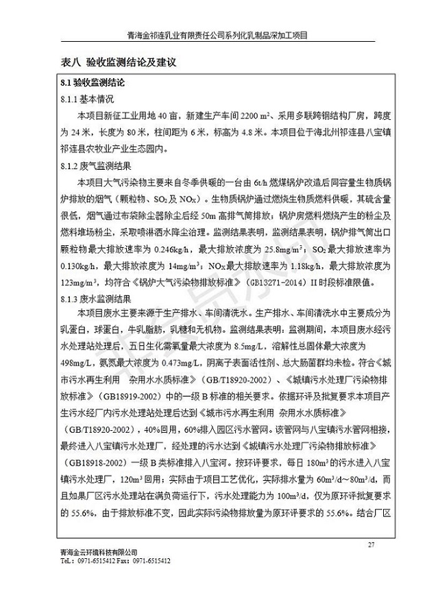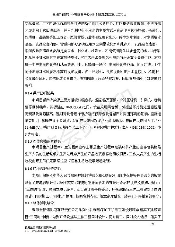 青海金祁連乳業(yè)有限責(zé)任公司系列化乳制品深加工項(xiàng)目竣工環(huán)境保護(hù)驗(yàn)收監(jiān)測(cè)報(bào)告表公示發(fā)布日期:(2019-7-10) 點(diǎn)擊次數(shù):2120 |