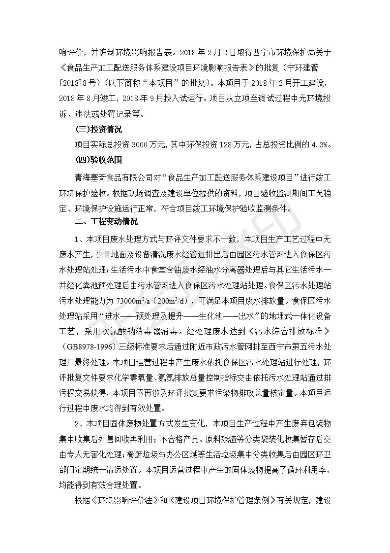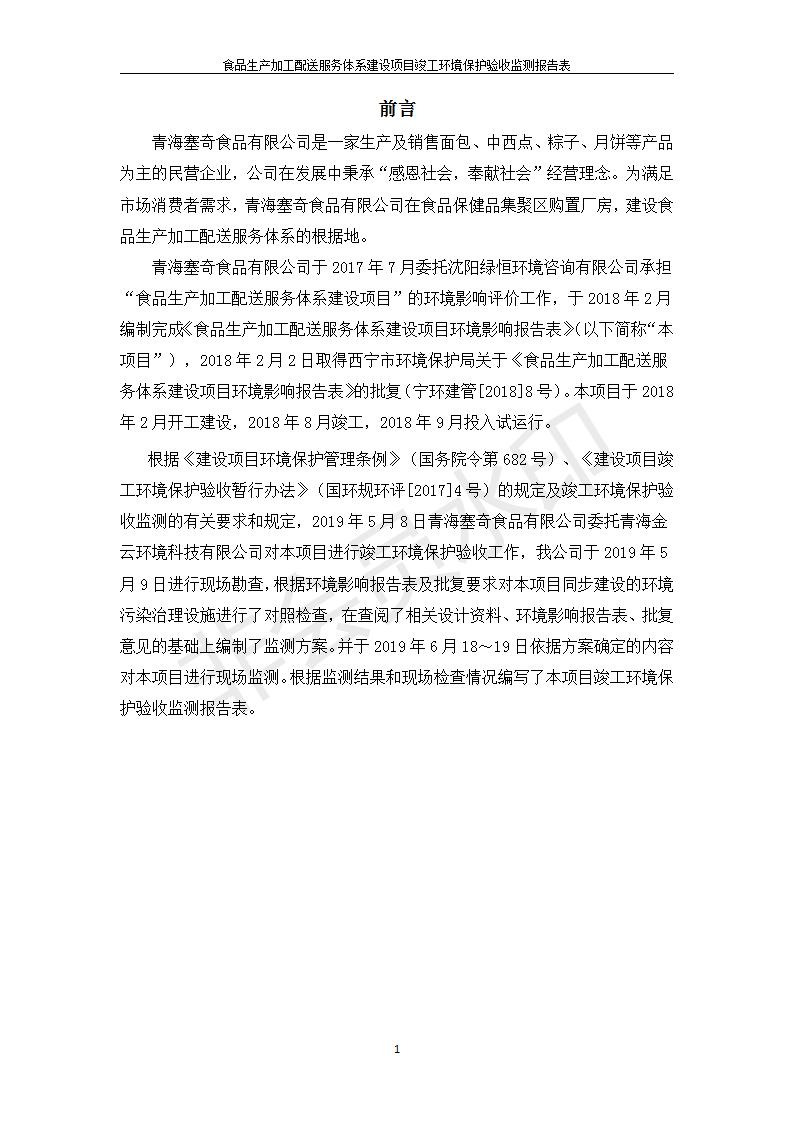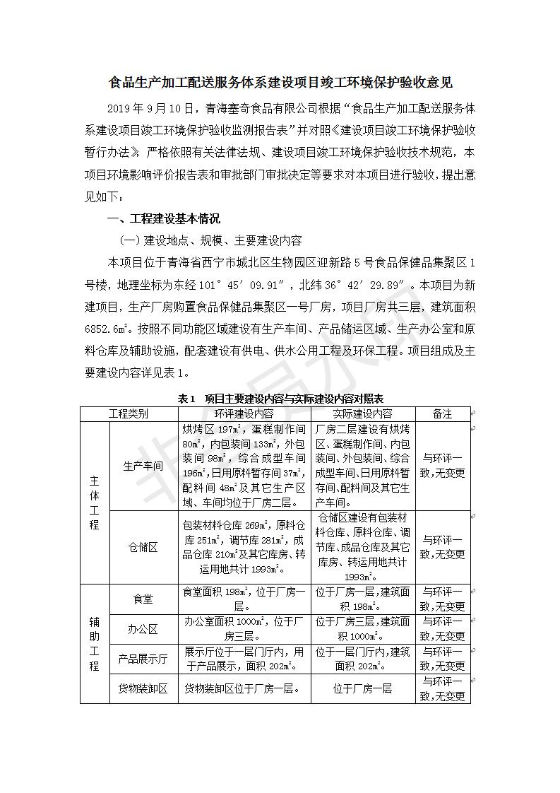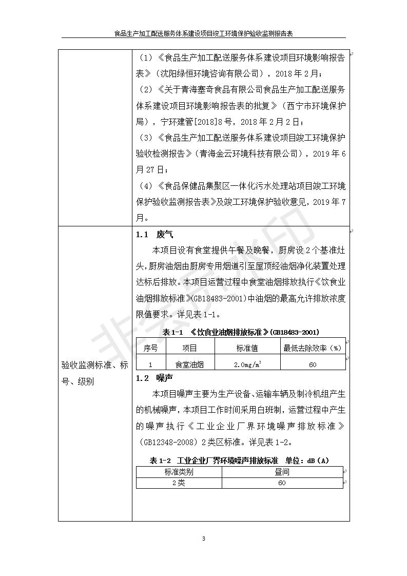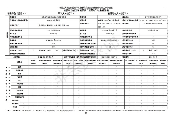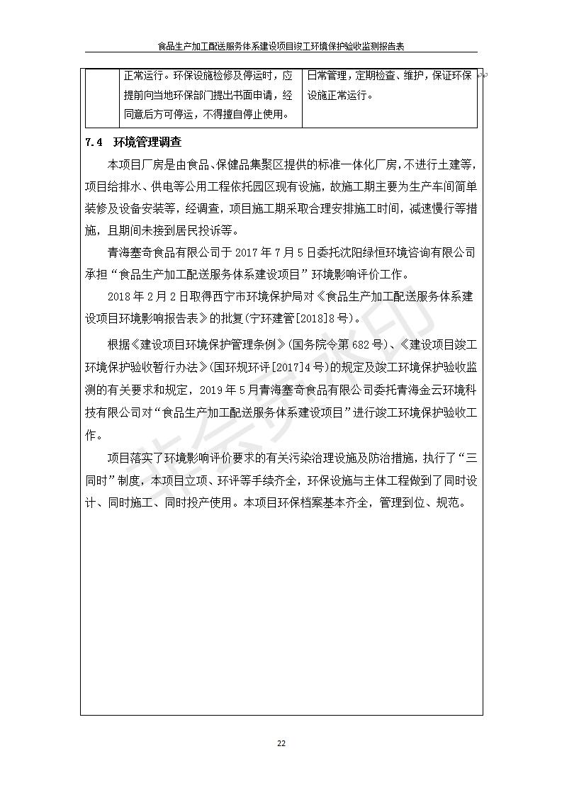 根據(jù)中華人民共和國國務(wù)院令第682號《國務(wù)院關(guān)于修改〈建設(shè)項目環(huán)境保護(hù)管理條例〉的決定》和《建設(shè)項目竣工環(huán)境保護(hù)驗收暫行辦法》(國務(wù)院令682號),食品生產(chǎn)加工配送服務(wù)體系建設(shè)項目(包括竣工環(huán)境保護(hù)驗收監(jiān)測報告表和驗收意見)公示如下。 一、項目名稱:食品生產(chǎn)加工配送服務(wù)體系建設(shè)項目 二、地點:西寧市城北區(qū)生物園區(qū)迎新路5號食品保健品集聚區(qū)1號樓 六、聯(lián)系電 話:0971-6515411 七、公示時間:二〇一九年九月二十日至二〇一九年十月二十二日 公示期間,對上述公示內(nèi)容如有異議,請以書面形式反饋,個人須署真實姓名,單位須加蓋公章。