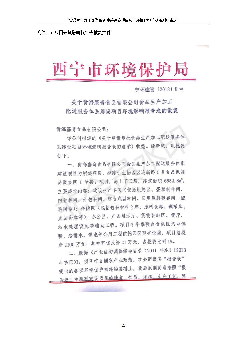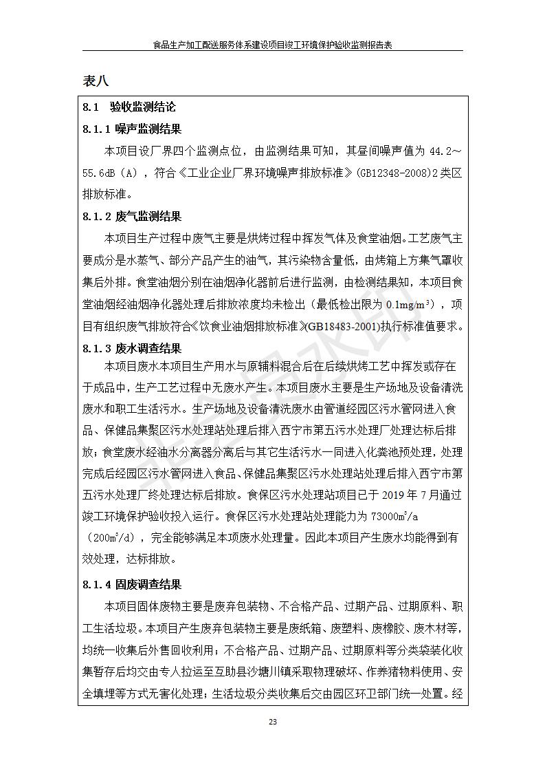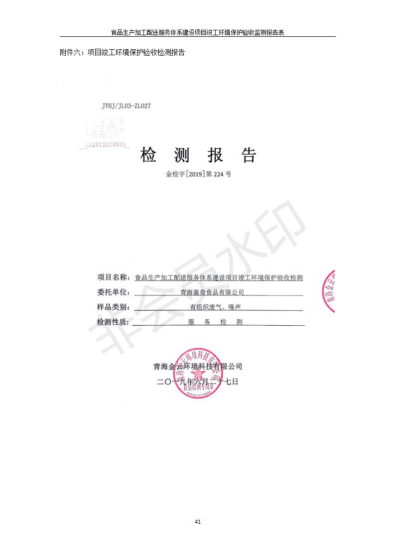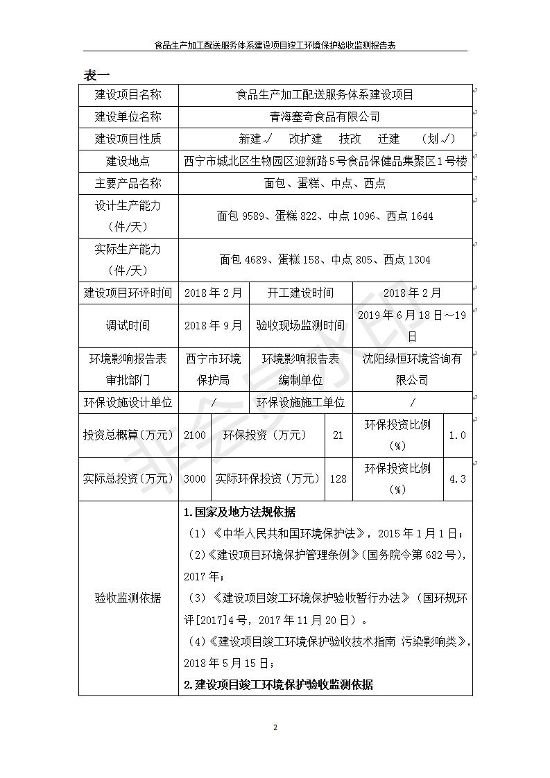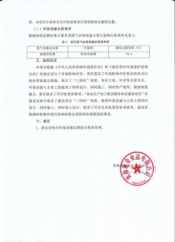 根據(jù)中華人民共和國國務(wù)院令第682號《國務(wù)院關(guān)于修改〈建設(shè)項目環(huán)境保護(hù)管理條例〉的決定》和《建設(shè)項目竣工環(huán)境保護(hù)驗收暫行辦法》(國務(wù)院令682號),食品生產(chǎn)加工配送服務(wù)體系建設(shè)項目(包括竣工環(huán)境保護(hù)驗收監(jiān)測報告表和驗收意見)公示如下。 一、項目名稱:食品生產(chǎn)加工配送服務(wù)體系建設(shè)項目 二、地點:西寧市城北區(qū)生物園區(qū)迎新路5號食品保健品集聚區(qū)1號樓 六、聯(lián)系電 話:0971-6515411 七、公示時間:二〇一九年九月二十日至二〇一九年十月二十二日 公示期間,對上述公示內(nèi)容如有異議,請以書面形式反饋,個人須署真實姓名,單位須加蓋公章。
