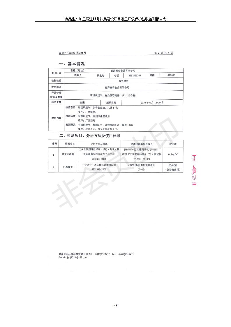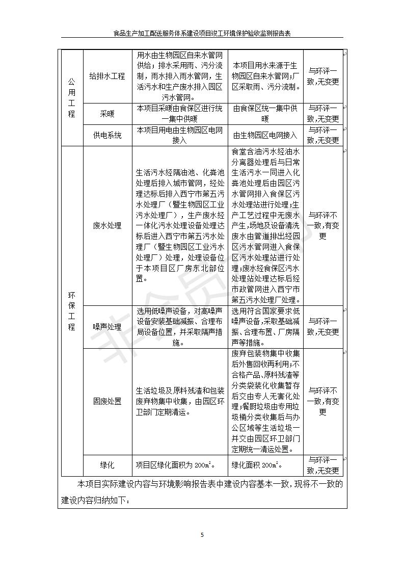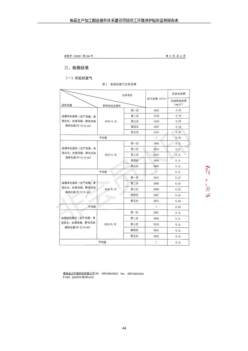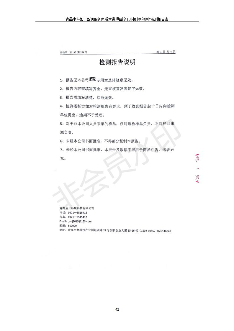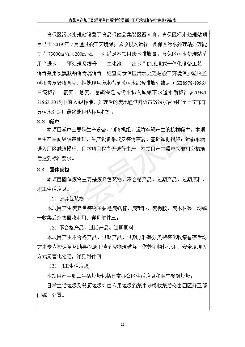 根據(jù)中華人民共和國國務(wù)院令第682號《國務(wù)院關(guān)于修改〈建設(shè)項目環(huán)境保護(hù)管理條例〉的決定》和《建設(shè)項目竣工環(huán)境保護(hù)驗收暫行辦法》(國務(wù)院令682號),食品生產(chǎn)加工配送服務(wù)體系建設(shè)項目(包括竣工環(huán)境保護(hù)驗收監(jiān)測報告表和驗收意見)公示如下。 一、項目名稱:食品生產(chǎn)加工配送服務(wù)體系建設(shè)項目 二、地點:西寧市城北區(qū)生物園區(qū)迎新路5號食品保健品集聚區(qū)1號樓 六、聯(lián)系電 話:0971-6515411 七、公示時間:二〇一九年九月二十日至二〇一九年十月二十二日 公示期間,對上述公示內(nèi)容如有異議,請以書面形式反饋,個人須署真實姓名,單位須加蓋公章。