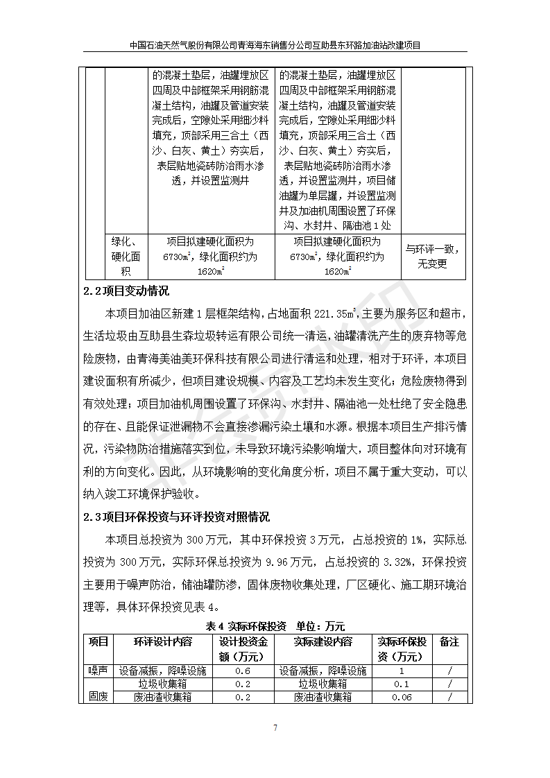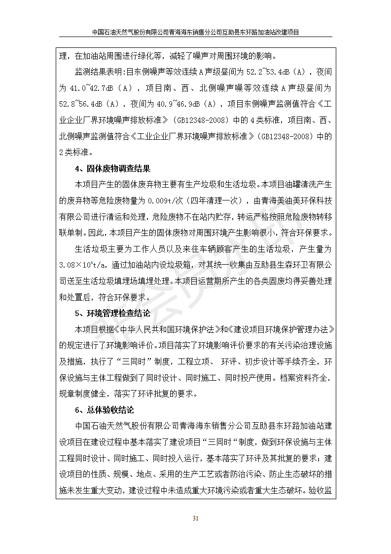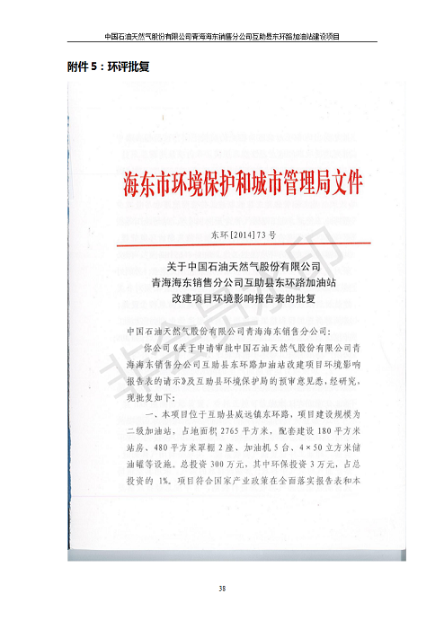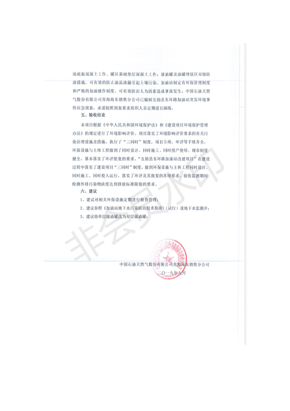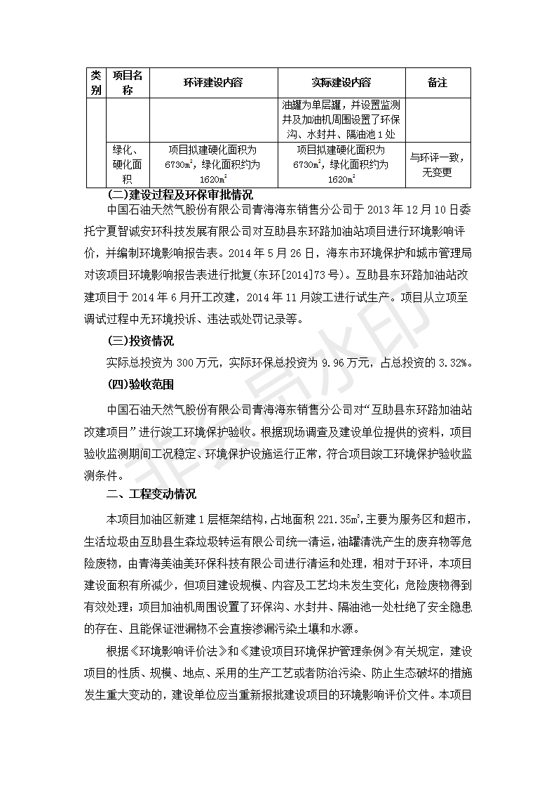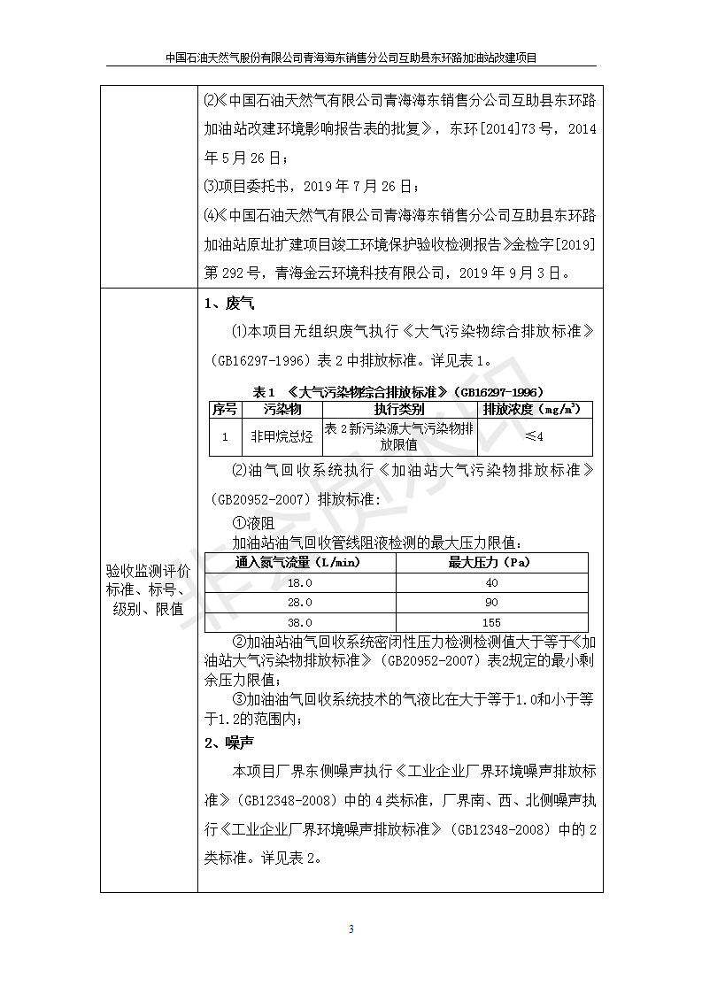 根據(jù)中華人民共和國國務(wù)院令第682號《國務(wù)院關(guān)于修改〈建設(shè)項目環(huán)境保護管理條例〉的決定》和《建設(shè)項目竣工環(huán)境保護驗收暫行辦法》(國務(wù)院令682號),互助縣東環(huán)路加油站改建項目(包括竣工環(huán)境保護驗收監(jiān)測報告表和驗收意見)公示如下。 一、項目名稱:互助縣東環(huán)路加油站改建項目 二、地點:青海省海東市互助縣東環(huán)路 六、聯(lián)系電話:0971-6515411 七、公示時間:二〇一九年九月二十七日至二〇一九年十月二十九日 公示期間,對上述公示內(nèi)容如有異議,請以書面形式反饋,個人須署真實姓名,單位須加蓋公章。