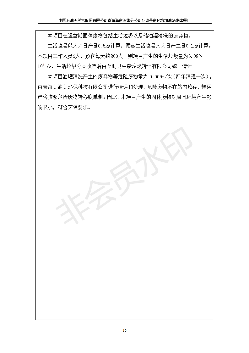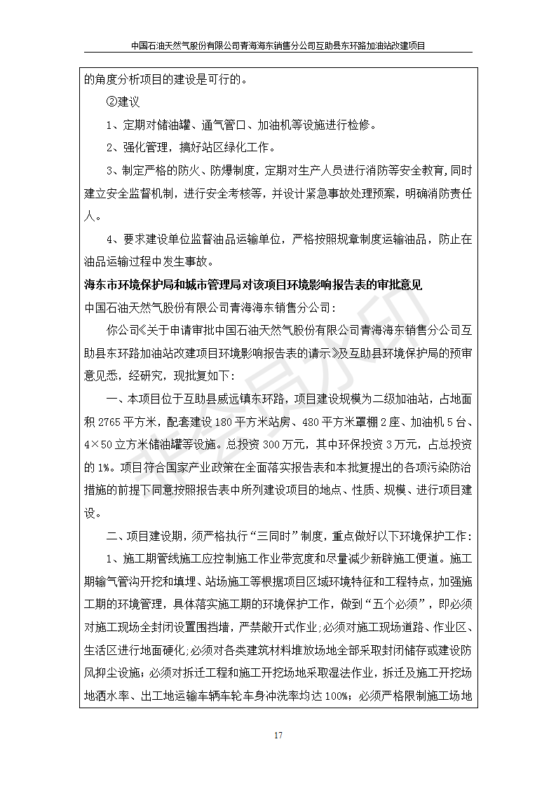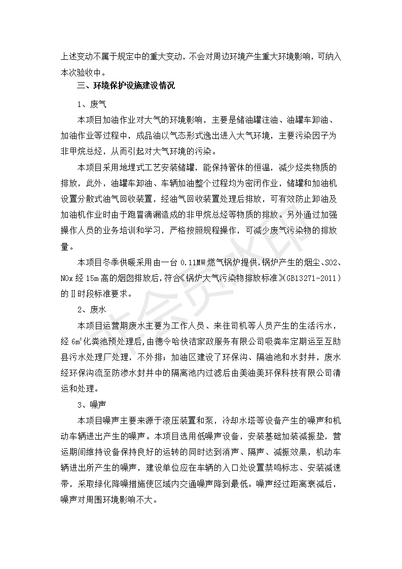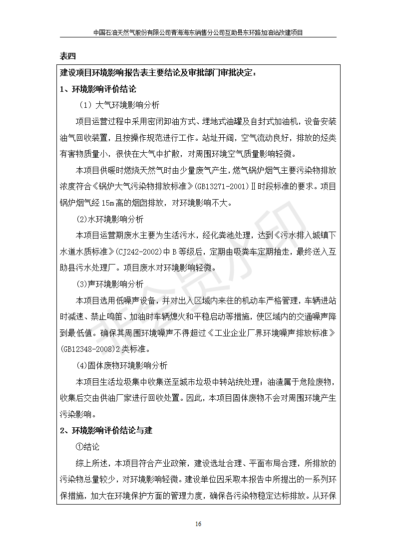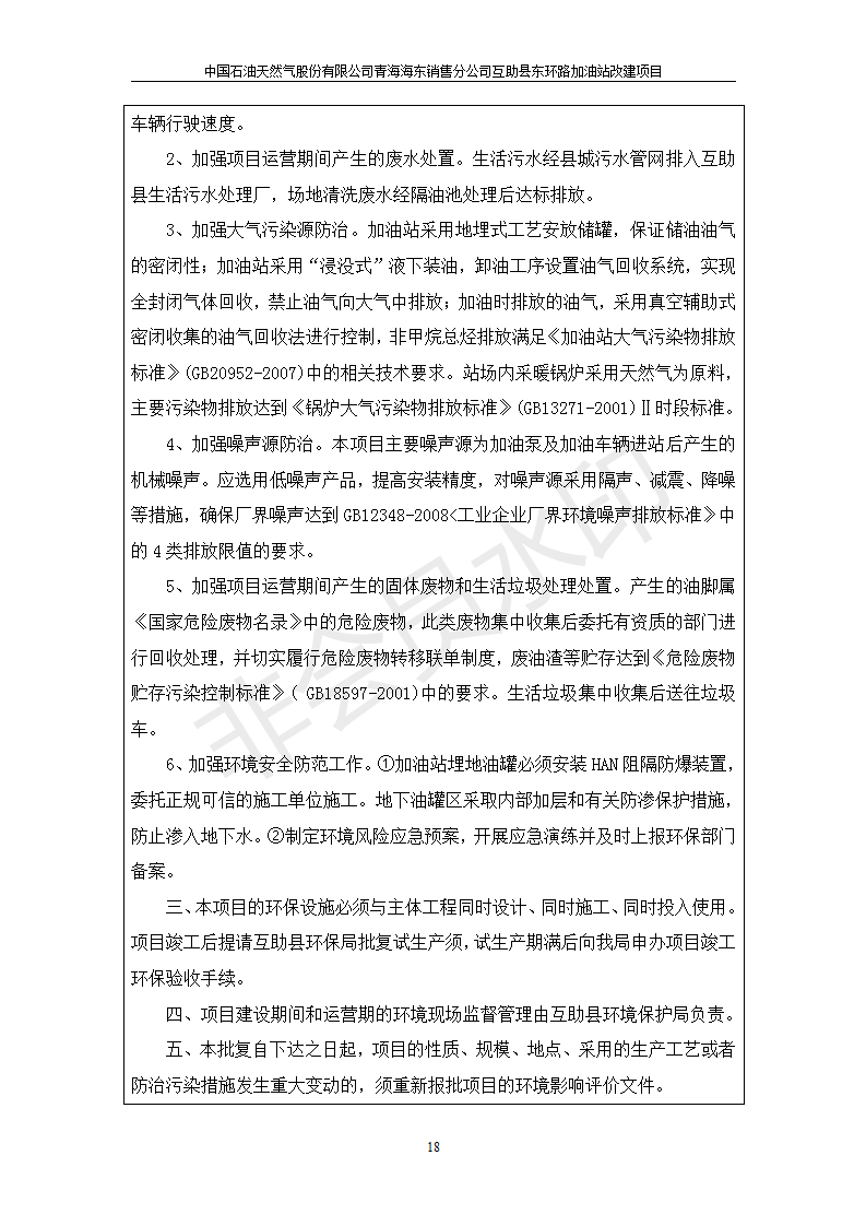 根據(jù)中華人民共和國國務(wù)院令第682號《國務(wù)院關(guān)于修改〈建設(shè)項目環(huán)境保護管理條例〉的決定》和《建設(shè)項目竣工環(huán)境保護驗收暫行辦法》(國務(wù)院令682號),互助縣東環(huán)路加油站改建項目(包括竣工環(huán)境保護驗收監(jiān)測報告表和驗收意見)公示如下。 一、項目名稱:互助縣東環(huán)路加油站改建項目 二、地點:青海省海東市互助縣東環(huán)路 六、聯(lián)系電話:0971-6515411 七、公示時間:二〇一九年九月二十七日至二〇一九年十月二十九日 公示期間,對上述公示內(nèi)容如有異議,請以書面形式反饋,個人須署真實姓名,單位須加蓋公章。