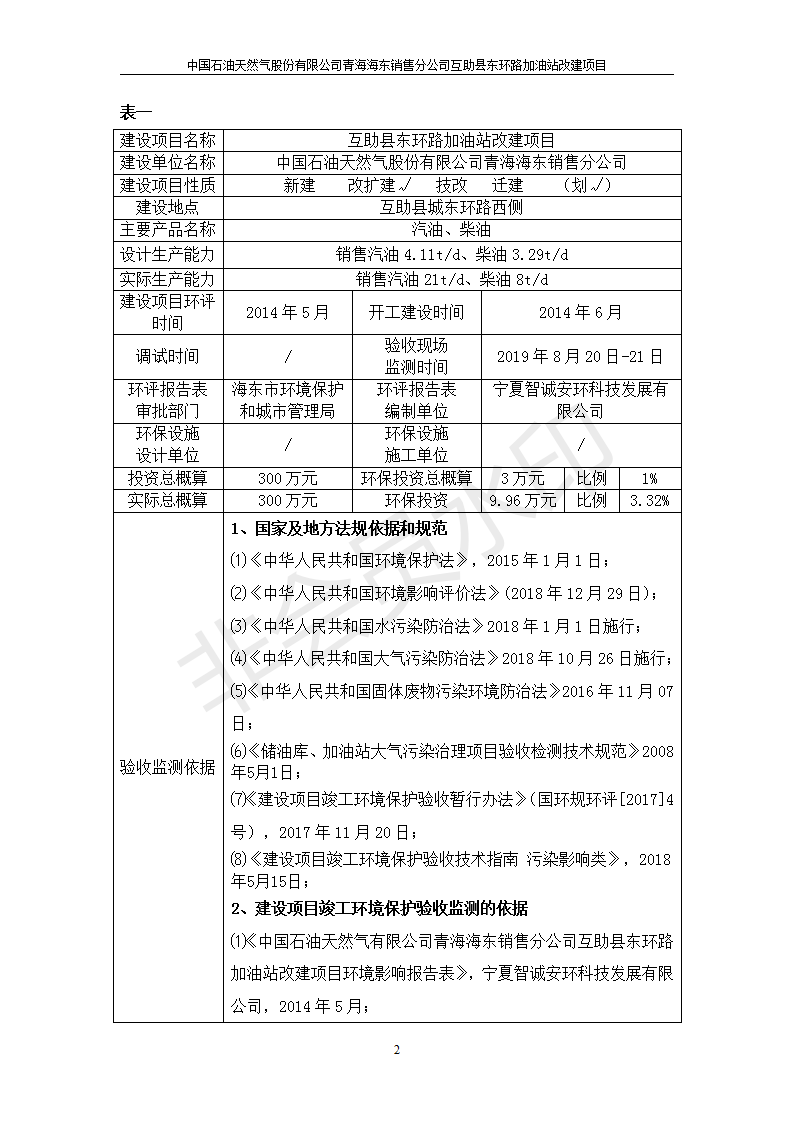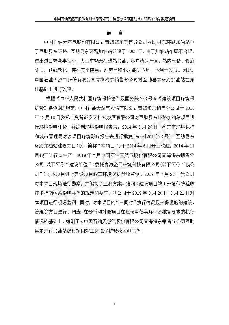 互助縣東環(huán)路加油站改建項目竣工環(huán)境保護驗收監(jiān)測報告表公示發(fā)布日期:(2019-9-27) 點擊次數(shù):2249 |