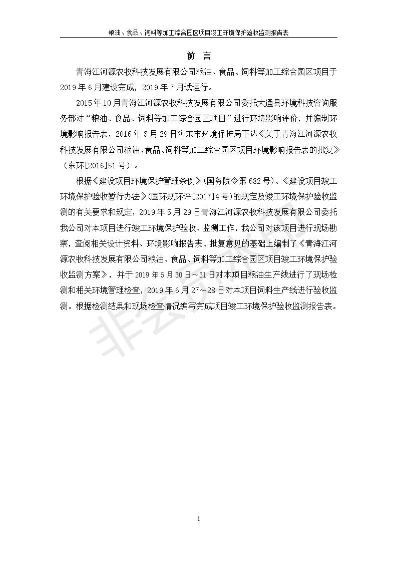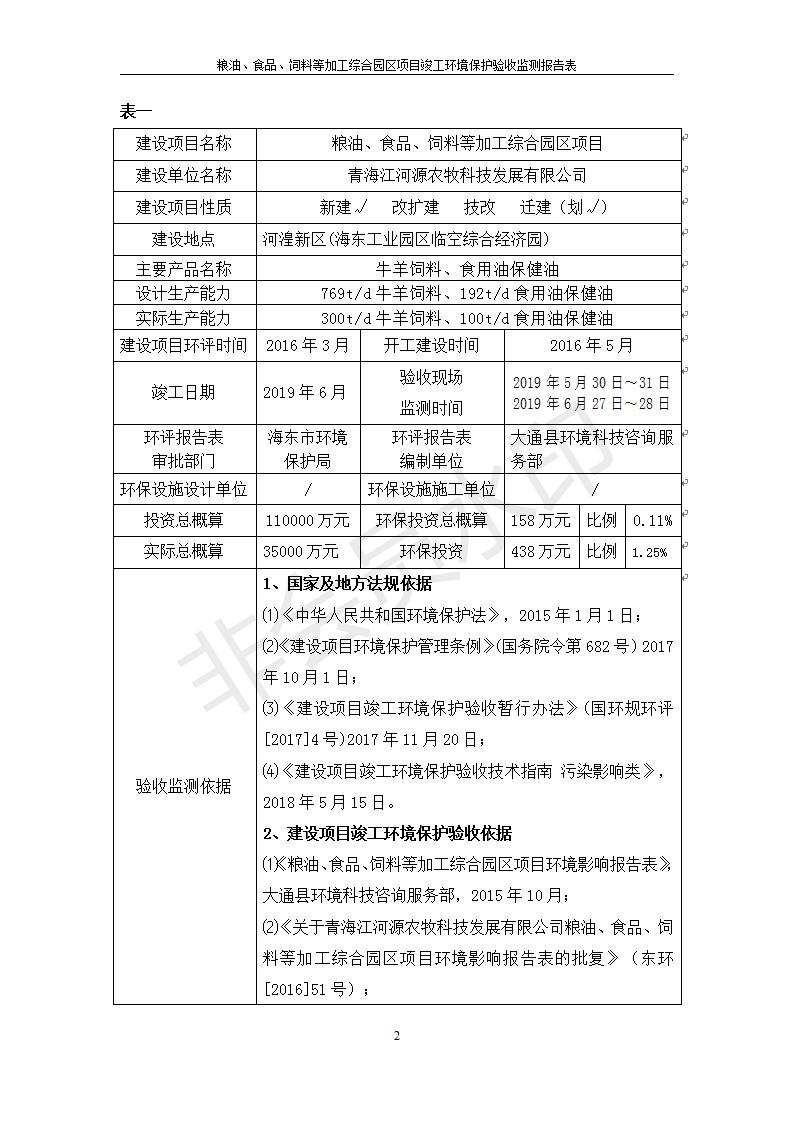 根據(jù)中華人民共和國(guó)國(guó)務(wù)院令第682號(hào)《國(guó)務(wù)院關(guān)于修改〈建設(shè)項(xiàng)目環(huán)境保護(hù)管理?xiàng)l例〉的決定》和《建設(shè)項(xiàng)目竣工環(huán)境保護(hù)驗(yàn)收暫行辦法》(國(guó)務(wù)院令682號(hào)),糧油、食品、飼料等加工綜合園區(qū)項(xiàng)目竣工環(huán)境保護(hù)驗(yàn)收監(jiān)測(cè)報(bào)告表(包括竣工環(huán)境保護(hù)驗(yàn)收監(jiān)測(cè)報(bào)告表和驗(yàn)收意見(jiàn))公示如下。 一、項(xiàng)目名稱:糧油、食品、飼料等加工綜合園區(qū)項(xiàng)目 二、地點(diǎn):河湟新區(qū)(海東工業(yè)園區(qū)臨空綜合經(jīng)濟(jì)園) 六、聯(lián)系電話:0971-6515411 七、公示時(shí)間:二〇一九年十月九日至二〇一九年十一月五日 公示期間,對(duì)上述公示內(nèi)容如有異議,請(qǐng)以書面形式反饋,個(gè)人須署真實(shí)姓名,單位須加蓋公章。