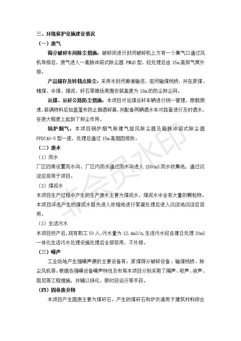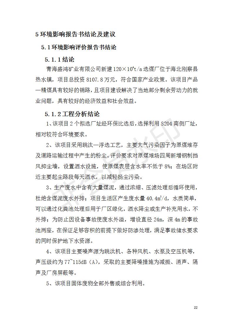 根據(jù)中華人民共和國(guó)國(guó)務(wù)院令第682號(hào)《國(guó)務(wù)院關(guān)于修改〈建設(shè)項(xiàng)目環(huán)境保護(hù)管理?xiàng)l例〉的決定》和《建設(shè)項(xiàng)目竣工環(huán)境保護(hù)驗(yàn)收暫行辦法》(國(guó)務(wù)院令682號(hào)),青海義盛選煤有限公司熱水選煤項(xiàng)目(階段性)竣工環(huán)境保護(hù)驗(yàn)收監(jiān)測(cè)報(bào)告(包括竣工環(huán)境保護(hù)驗(yàn)收監(jiān)測(cè)報(bào)告和驗(yàn)收意見)公示如下。 一、項(xiàng)目名稱:青海義盛選煤有限公司熱水選煤項(xiàng)目(階段性) 二、地點(diǎn):剛察縣熱水鎮(zhèn) 此外還包括公用工程系統(tǒng)、消防系統(tǒng)及輔助生產(chǎn)設(shè)施等。 五、聯(lián)系人:張工六、聯(lián)系電話:0971-6515411 七、公示時(shí)間:二〇一九年十一月十二日至二〇一九年十二月九日