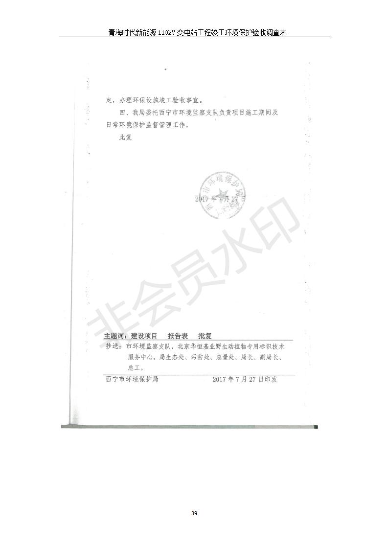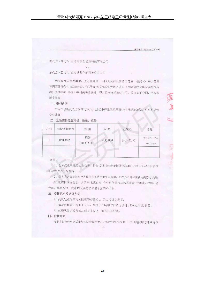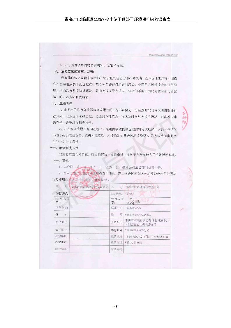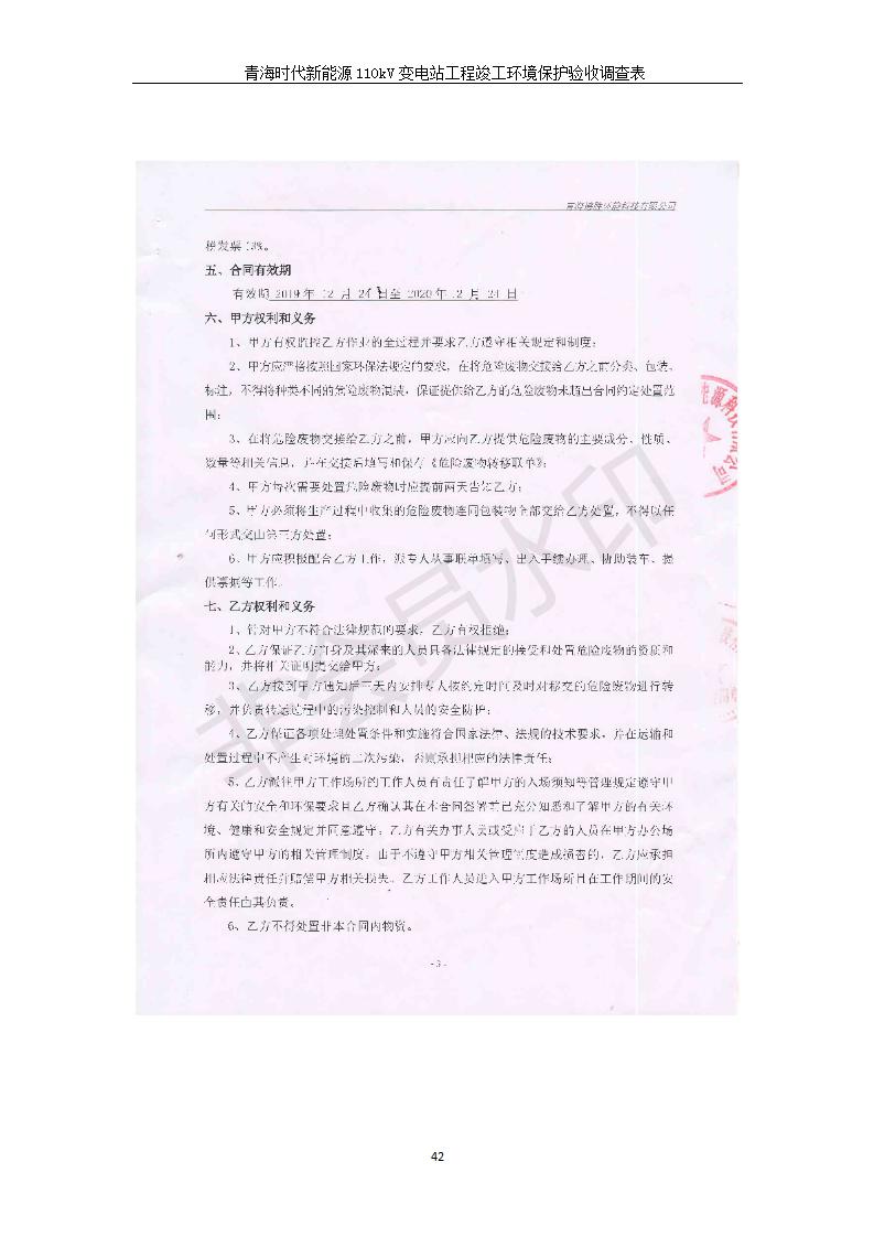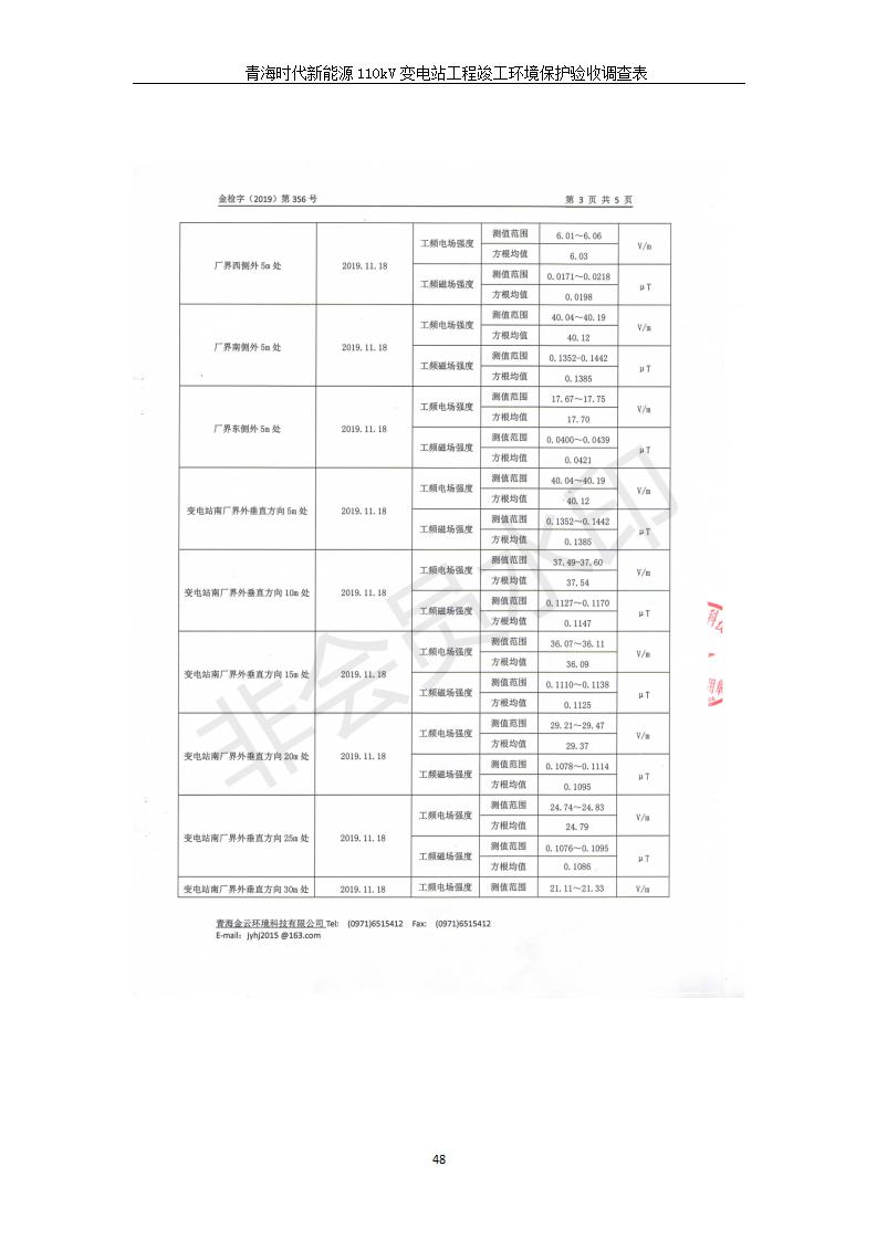 根據(jù)中華人民共和國(guó)國(guó)務(wù)院令第682號(hào)《國(guó)務(wù)院關(guān)于修改〈建設(shè)項(xiàng)目環(huán)境保護(hù)管理?xiàng)l例〉的決定》和《建設(shè)項(xiàng)目竣工環(huán)境保護(hù)驗(yàn)收暫行辦法》(國(guó)務(wù)院令682號(hào)),青海時(shí)代新能源110kV變電站工程(包括竣工環(huán)境保護(hù)驗(yàn)收調(diào)查表和驗(yàn)收意見(jiàn))公示如下。 一、項(xiàng)目名稱:青海時(shí)代新能源110kV變電站工程 二、地點(diǎn):青海省西寧市南川工業(yè)園區(qū)創(chuàng)業(yè)路182號(hào)青海時(shí)代新能源科技有限公司廠區(qū)內(nèi) 三、建設(shè)單位:青海時(shí)代新能源科技有限公司 四、建設(shè)內(nèi)容:青海時(shí)代新能源 110kV 變電站采用全戶內(nèi)布置方式,依據(jù)環(huán)評(píng)報(bào)告及批復(fù)文件,經(jīng)現(xiàn)場(chǎng)踏勘本工程建設(shè)只包含變電站建設(shè)部分,輸電線路由南川工業(yè)園區(qū)管委會(huì)負(fù)責(zé)建設(shè),輸電線路不屬于本次驗(yàn)收調(diào)查范圍。工程本期規(guī)模2×31.5MVA,電壓等級(jí)為110/10kV。變電站 110kV 出線間隔最終2回,本期建設(shè)出線間隔2回;10kV最終電纜出線8回,本期電纜出線6回。 五、聯(lián)系人:張工 六、聯(lián)系電話:0971-6515411 七、公示時(shí)間:二〇二〇年一月十四日至二〇二〇年二月十三日 公示期間,對(duì)上述公示內(nèi)容如有異議,請(qǐng)以書面形式反饋,個(gè)人須署真實(shí)姓名,單位須加蓋公章。