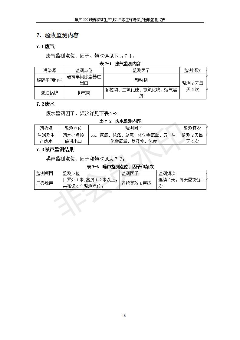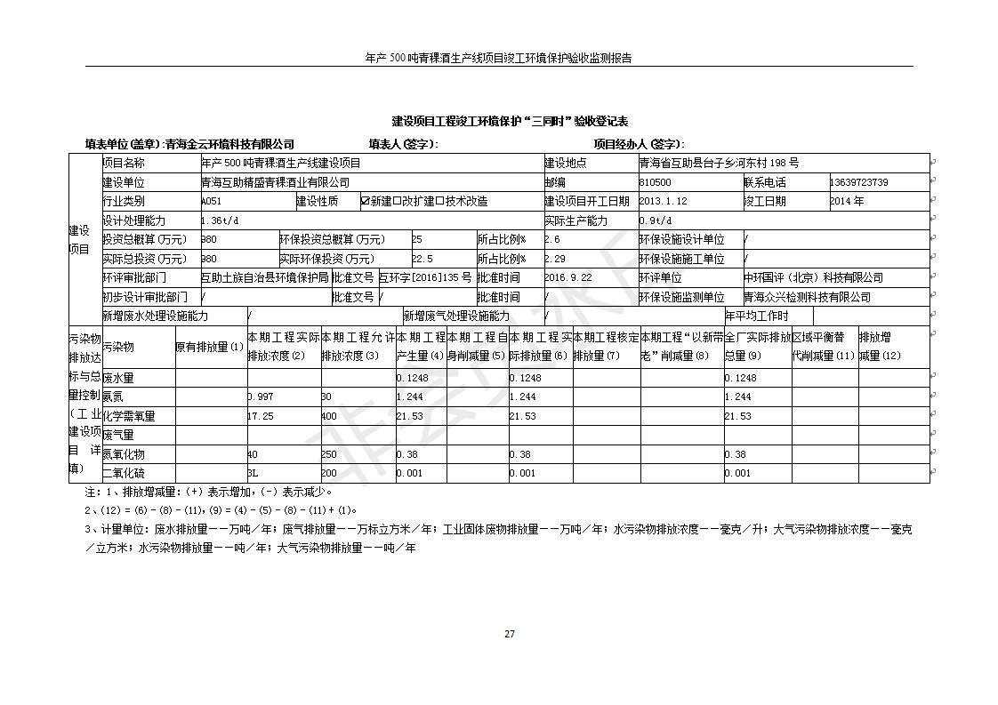 根據(jù)中華人民共和國(guó)國(guó)務(wù)院令第682號(hào)《國(guó)務(wù)院關(guān)于修改〈建設(shè)項(xiàng)目環(huán)境保護(hù)管理?xiàng)l例〉的決定》和《建設(shè)項(xiàng)目竣工環(huán)境保護(hù)驗(yàn)收暫行辦法》(國(guó)務(wù)院令682號(hào)),綜合檢測(cè)實(shí)驗(yàn)室建設(shè)項(xiàng)目(包括竣工環(huán)境保護(hù)驗(yàn)收監(jiān)測(cè)報(bào)告表和驗(yàn)收意見(jiàn))公示如下。 一、項(xiàng)目名稱:青海互助精盛青稞酒業(yè)有限公司年產(chǎn)500噸青稞酒業(yè)生產(chǎn)線建設(shè)項(xiàng)目 二、地點(diǎn):青海省海東市互助土族自治縣臺(tái)子鄉(xiāng)河?xùn)|村198號(hào)