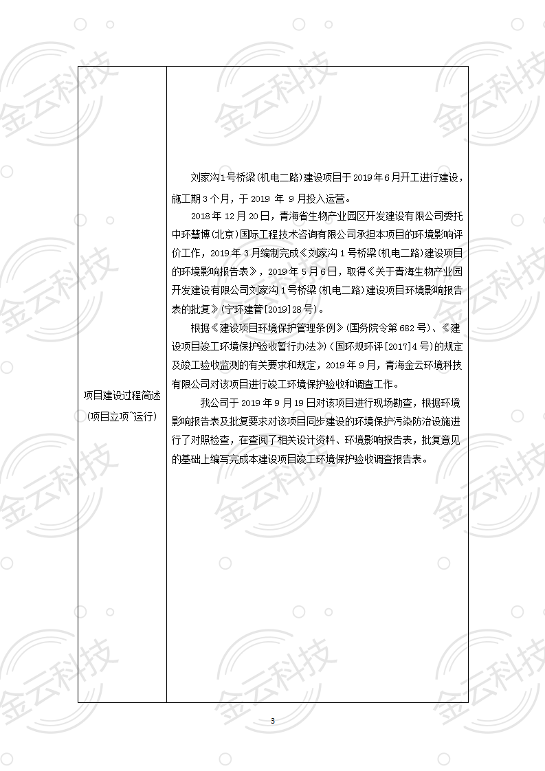 根據(jù)中華人民共和國國務(wù)院令第682號《國務(wù)院關(guān)于修改〈建設(shè)項目環(huán)境保護(hù)管理條例〉的決定》和《建設(shè)項目竣工環(huán)境保護(hù)驗(yàn)收暫行辦法》(國務(wù)院令682號),劉家溝1號橋梁(機(jī)電二路)建設(shè)項目竣工環(huán)境保護(hù)驗(yàn)收調(diào)查表,(包括竣工環(huán)境保護(hù)驗(yàn)收調(diào)查表和驗(yàn)收意見)公示如下。 一、項目名稱:劉家溝1號橋梁(機(jī)電二路)建設(shè)項目竣工環(huán)境保護(hù)驗(yàn)收調(diào)查表 二、地點(diǎn):青海省西寧市城北區(qū)生物園區(qū) 三、建設(shè)單位:青海生物產(chǎn)業(yè)園開發(fā)建設(shè)有限公司 四、建設(shè)內(nèi)容:本項目主要建設(shè)內(nèi)容為橋梁工程、接線路基等工程。項目南北走向,北起機(jī)電二路,南至寧張路,項目全長150m. 五、聯(lián)系人:張工 六、聯(lián)系電 話:0971-6515411 七、公示時間:二〇二〇年六月二日至二〇二〇年六月三十日 公示期間,對上述公示內(nèi)容如有異議,請以書面形式反饋,個人須署真實(shí)姓名,單位須加蓋公章。 |