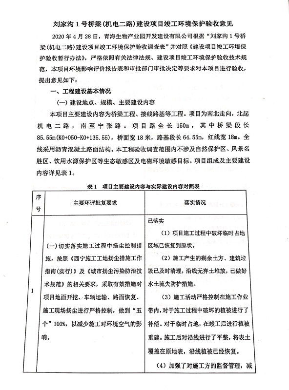 劉家溝1號橋梁(機(jī)電二路)建設(shè)項目竣工環(huán)境保護(hù)驗(yàn)收調(diào)查表發(fā)布日期:(2020-6-2) 點(diǎn)擊次數(shù):3332 |