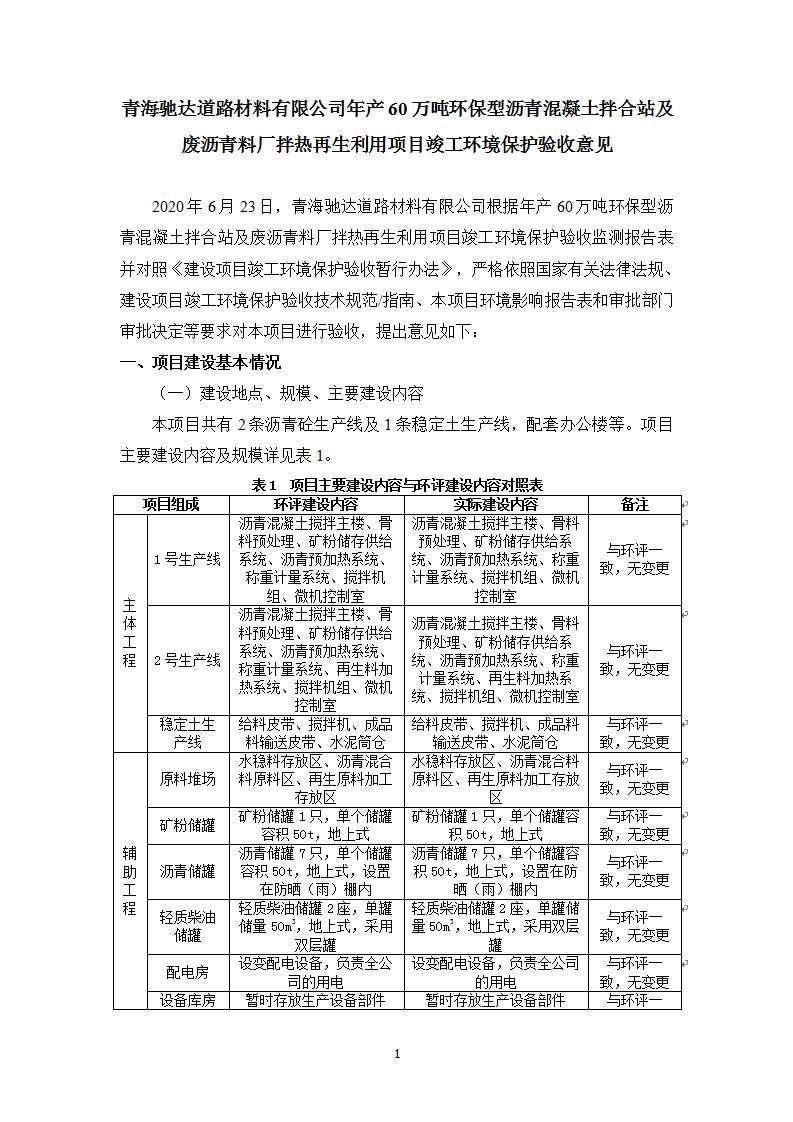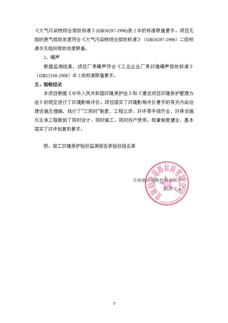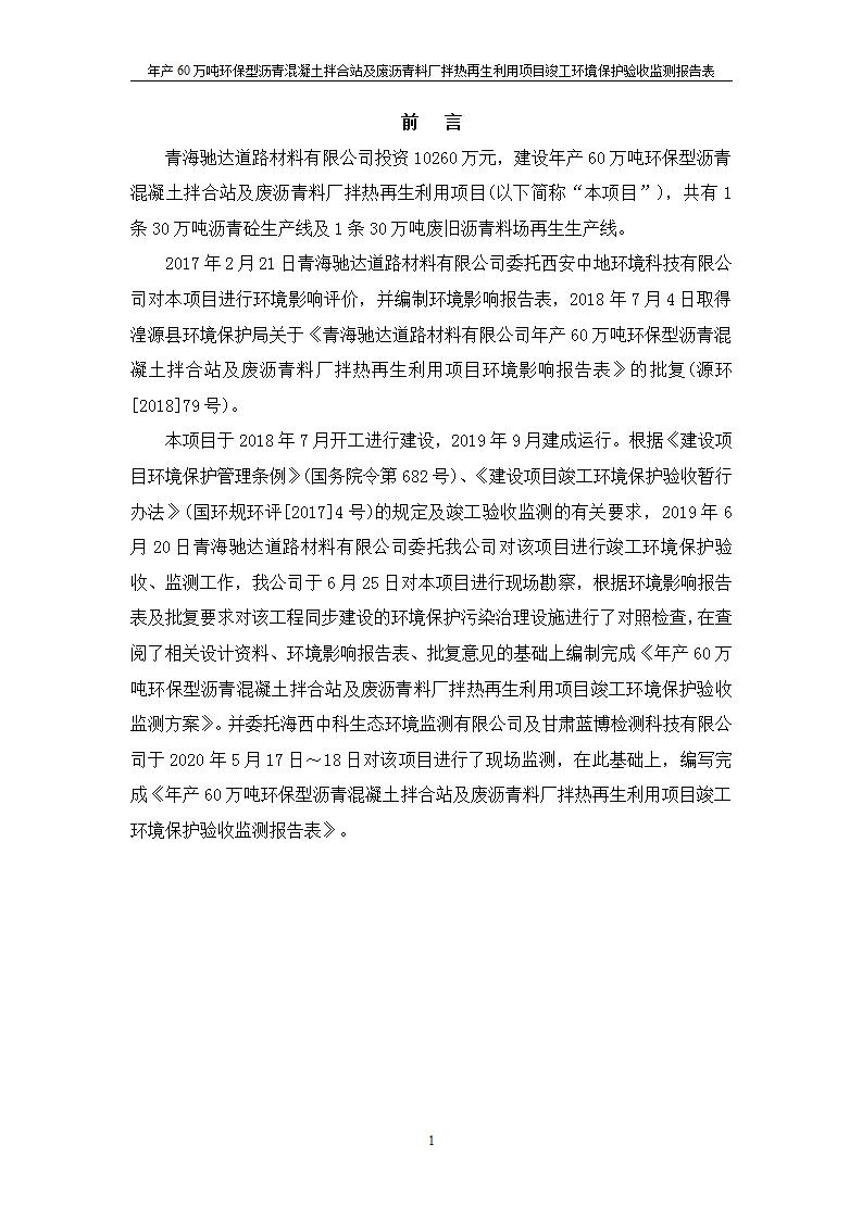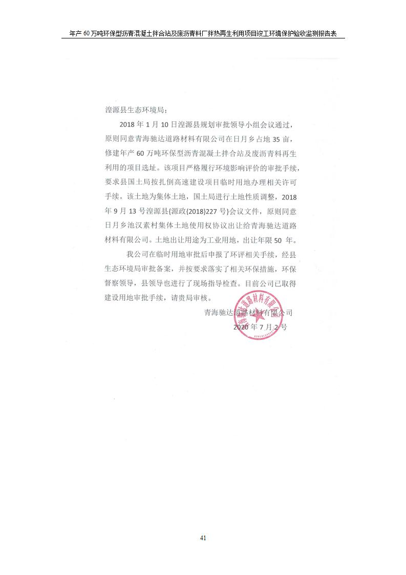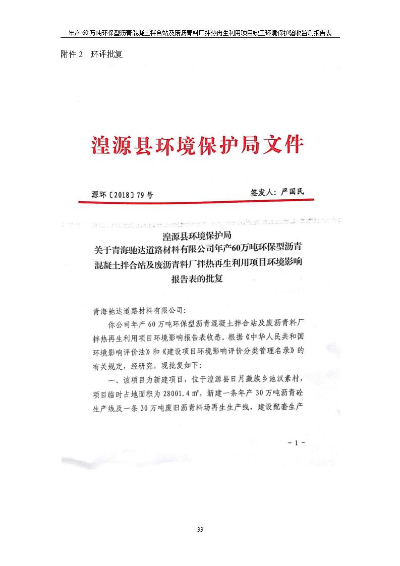 根據(jù)中華人民共和國國務(wù)院令第682號《國務(wù)院關(guān)于修改〈建設(shè)項目環(huán)境保護管理條例〉的決定》和《建設(shè)項目竣工環(huán)境保護驗收暫行辦法》(國務(wù)院令682號),青海馳達道路材料有限公司年產(chǎn)60萬噸環(huán)保型瀝青混凝土拌合站及廢瀝青料廠拌熱再生利用項目竣工環(huán)境保護驗收監(jiān)測報告表公示如下。 一、項目名稱:年產(chǎn)60萬噸環(huán)保型瀝青混凝土拌合站及廢瀝青料廠拌熱再生利用項目竣工環(huán)境保護驗收監(jiān)測報告表 二、地點:湟源縣日月藏族鄉(xiāng)池漢素村 三、建設(shè)單位:青海馳達道路材料有限公司 四、建設(shè)內(nèi)容:本項目共有2條瀝青砼生產(chǎn)線及1條穩(wěn)定土生產(chǎn)線,配套辦公樓等。 五、聯(lián)系人:楊工 六、聯(lián)系電 話:0971-6515411 七、公示時間:二〇二〇年七月六日至二〇二〇年七月三十一日 公示期間,對上述公示內(nèi)容如有異議,請以書面形式反饋,個人須署真實姓名,單位須加蓋公章。