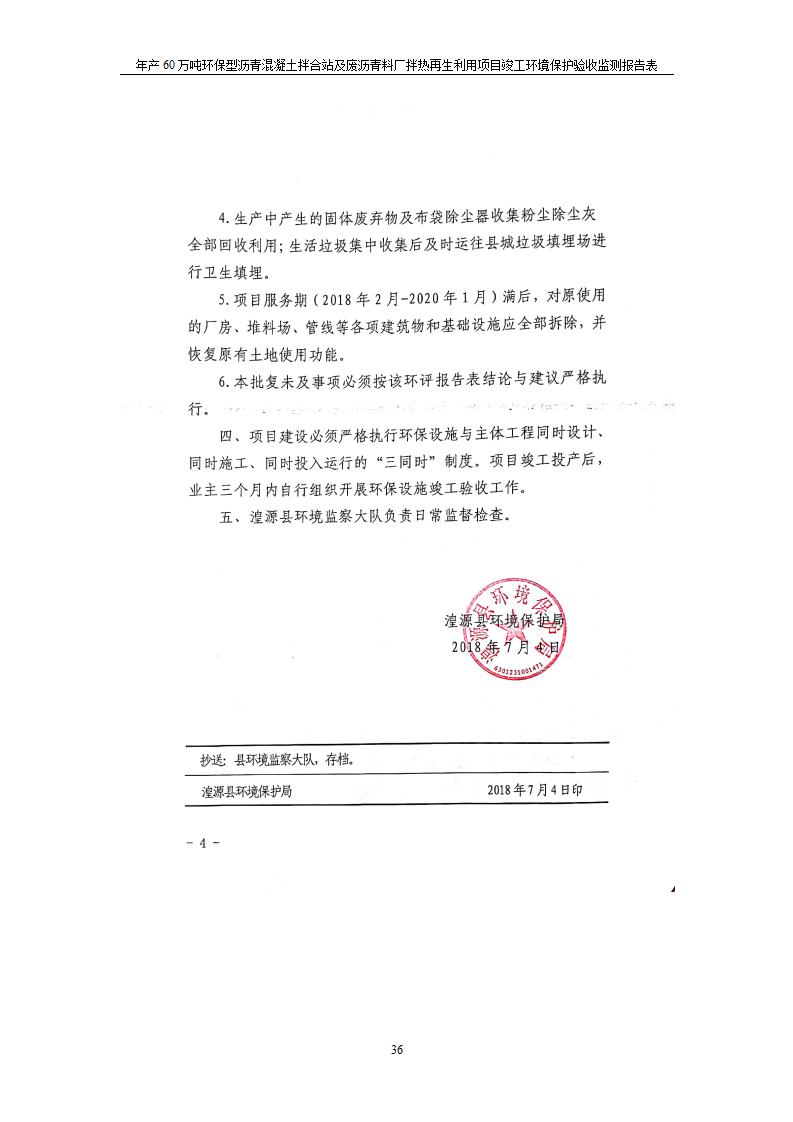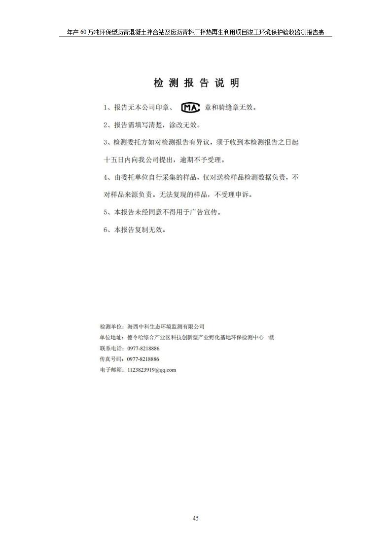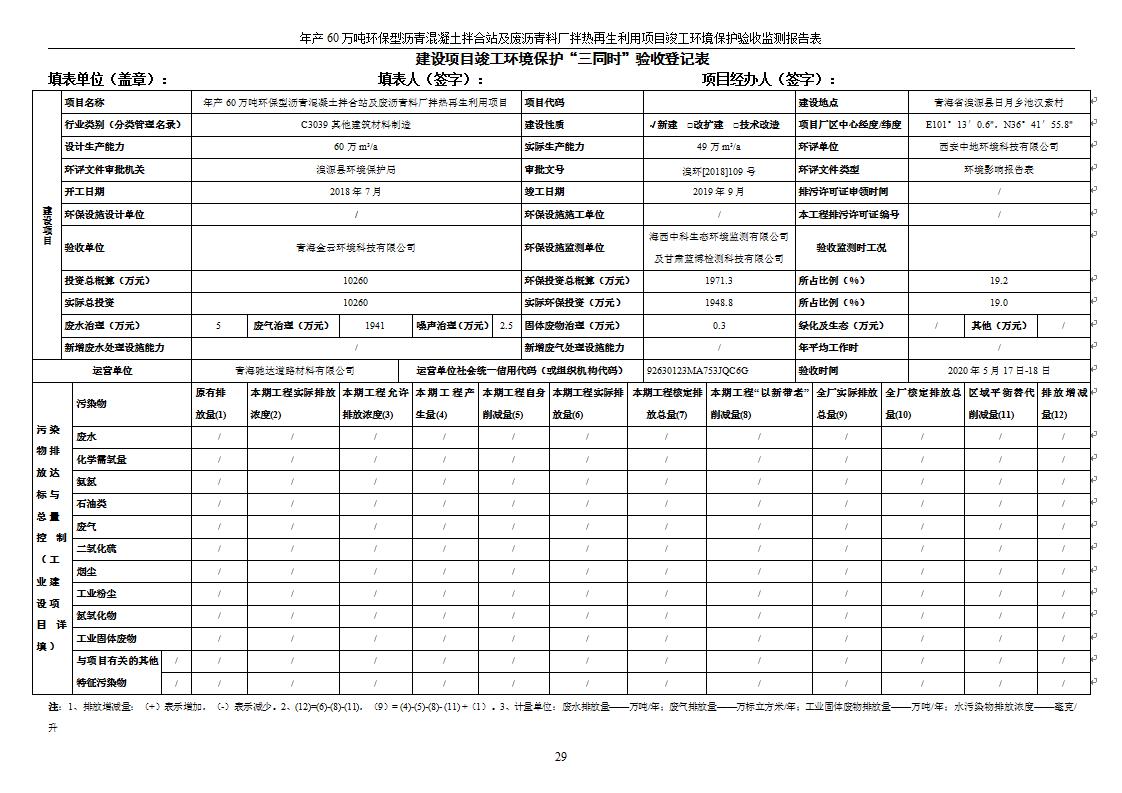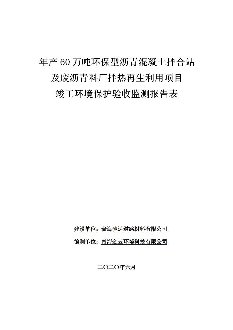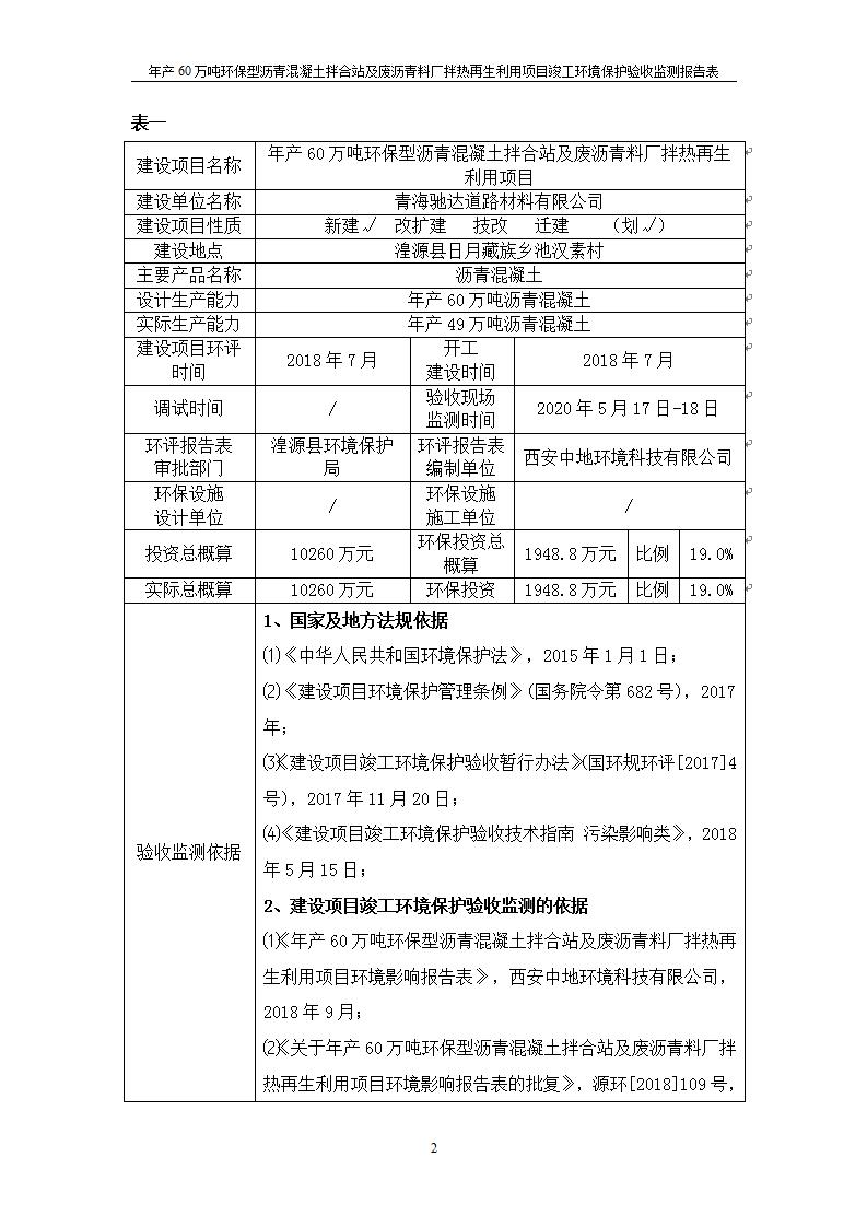 根據(jù)中華人民共和國國務(wù)院令第682號《國務(wù)院關(guān)于修改〈建設(shè)項目環(huán)境保護管理條例〉的決定》和《建設(shè)項目竣工環(huán)境保護驗收暫行辦法》(國務(wù)院令682號),青海馳達道路材料有限公司年產(chǎn)60萬噸環(huán)保型瀝青混凝土拌合站及廢瀝青料廠拌熱再生利用項目竣工環(huán)境保護驗收監(jiān)測報告表公示如下。 一、項目名稱:年產(chǎn)60萬噸環(huán)保型瀝青混凝土拌合站及廢瀝青料廠拌熱再生利用項目竣工環(huán)境保護驗收監(jiān)測報告表 二、地點:湟源縣日月藏族鄉(xiāng)池漢素村 三、建設(shè)單位:青海馳達道路材料有限公司 四、建設(shè)內(nèi)容:本項目共有2條瀝青砼生產(chǎn)線及1條穩(wěn)定土生產(chǎn)線,配套辦公樓等。 五、聯(lián)系人:楊工 六、聯(lián)系電 話:0971-6515411 七、公示時間:二〇二〇年七月六日至二〇二〇年七月三十一日 公示期間,對上述公示內(nèi)容如有異議,請以書面形式反饋,個人須署真實姓名,單位須加蓋公章。