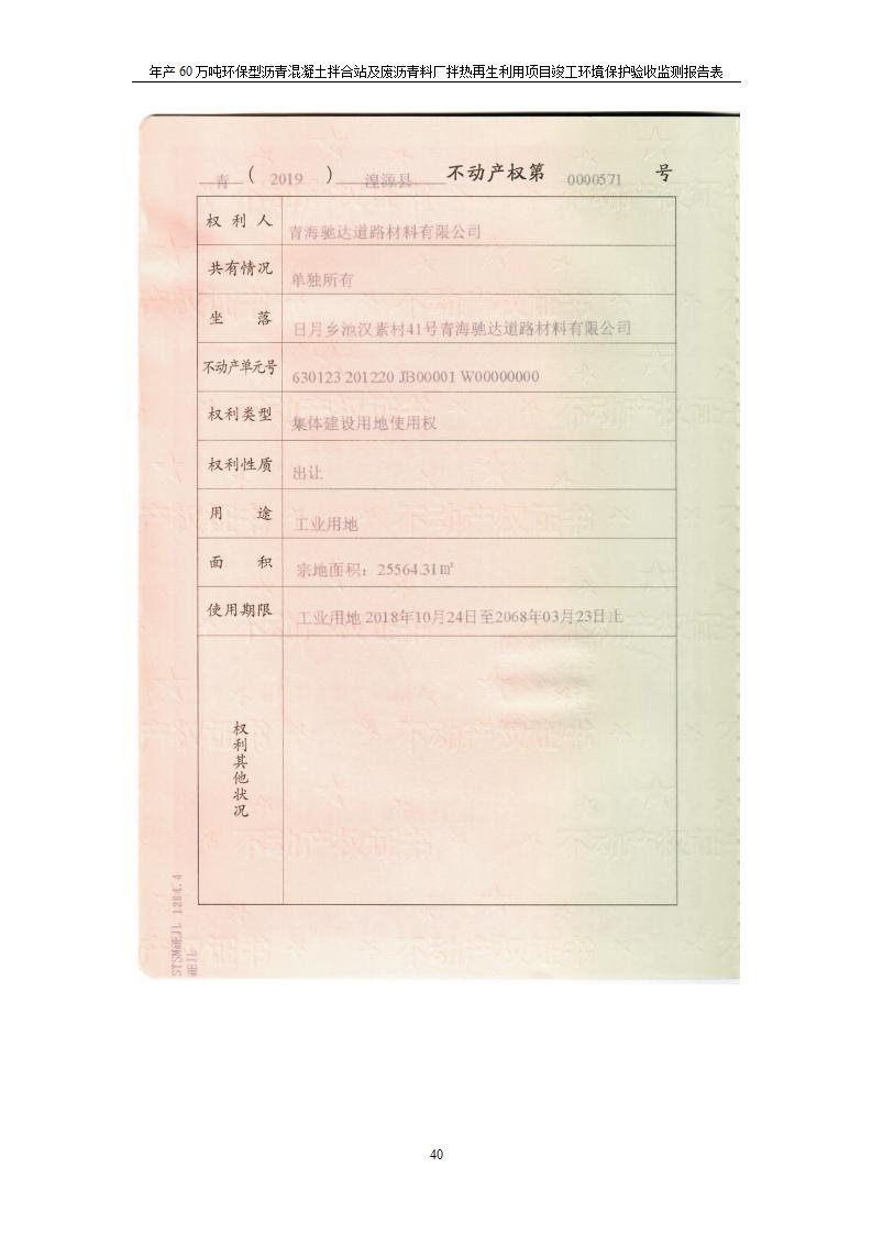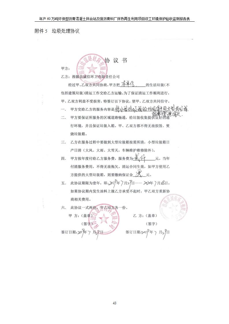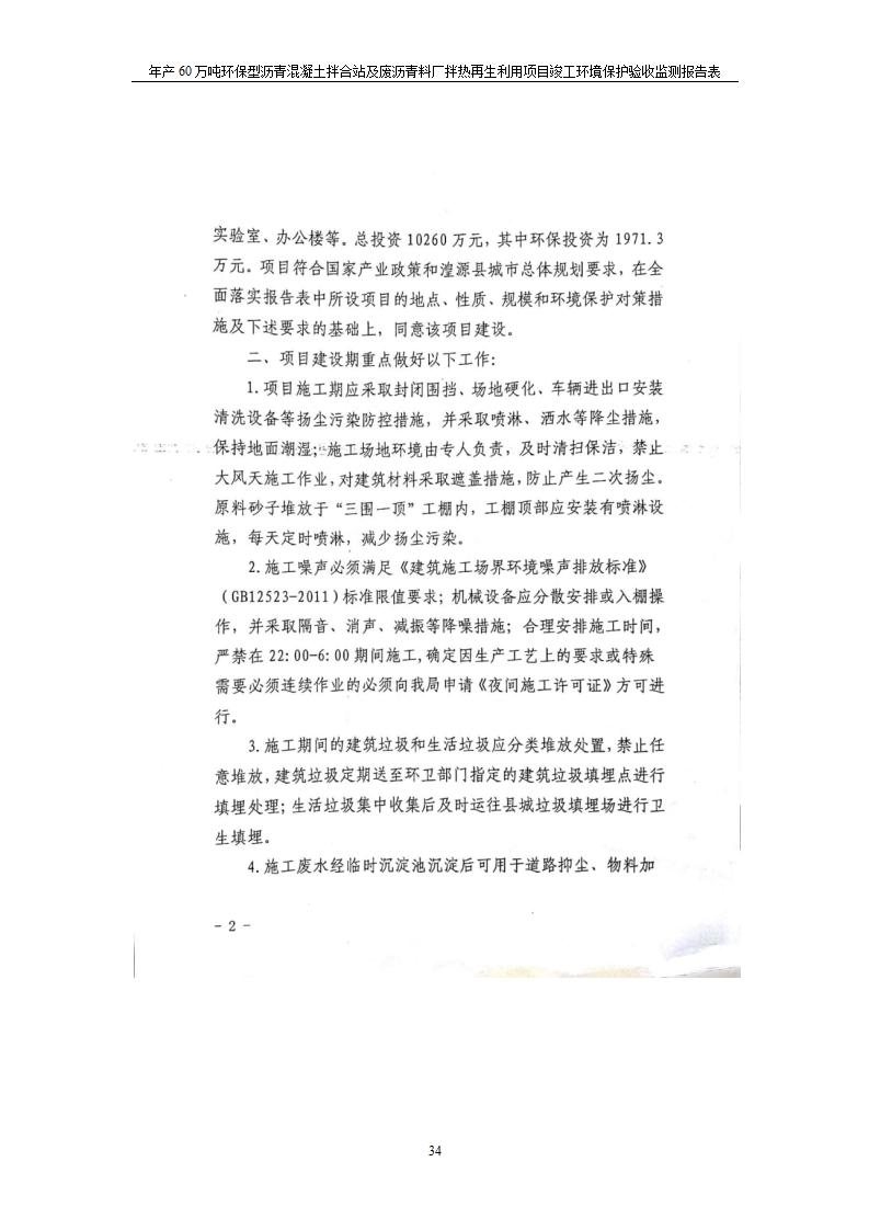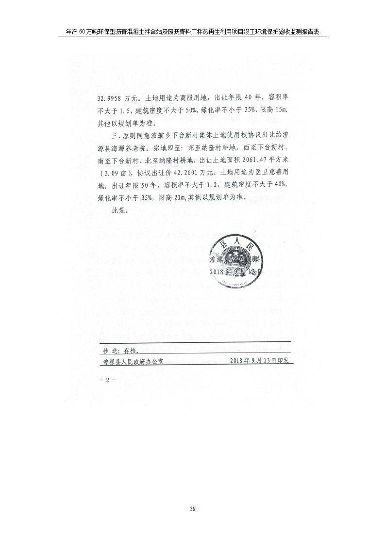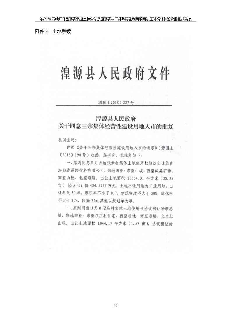 根據(jù)中華人民共和國國務(wù)院令第682號《國務(wù)院關(guān)于修改〈建設(shè)項目環(huán)境保護管理條例〉的決定》和《建設(shè)項目竣工環(huán)境保護驗收暫行辦法》(國務(wù)院令682號),青海馳達道路材料有限公司年產(chǎn)60萬噸環(huán)保型瀝青混凝土拌合站及廢瀝青料廠拌熱再生利用項目竣工環(huán)境保護驗收監(jiān)測報告表公示如下。 一、項目名稱:年產(chǎn)60萬噸環(huán)保型瀝青混凝土拌合站及廢瀝青料廠拌熱再生利用項目竣工環(huán)境保護驗收監(jiān)測報告表 二、地點:湟源縣日月藏族鄉(xiāng)池漢素村 三、建設(shè)單位:青海馳達道路材料有限公司 四、建設(shè)內(nèi)容:本項目共有2條瀝青砼生產(chǎn)線及1條穩(wěn)定土生產(chǎn)線,配套辦公樓等。 五、聯(lián)系人:楊工 六、聯(lián)系電 話:0971-6515411 七、公示時間:二〇二〇年七月六日至二〇二〇年七月三十一日 公示期間,對上述公示內(nèi)容如有異議,請以書面形式反饋,個人須署真實姓名,單位須加蓋公章。