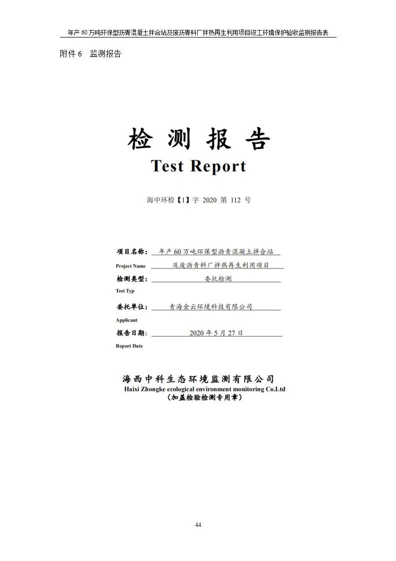 年產(chǎn)60萬噸環(huán)保型瀝青混凝土拌合站及廢瀝青料廠拌熱再生利用項目竣工環(huán)境保護驗收監(jiān)測報告表公示發(fā)布日期:(2020-7-6) 點擊次數(shù):3724 |