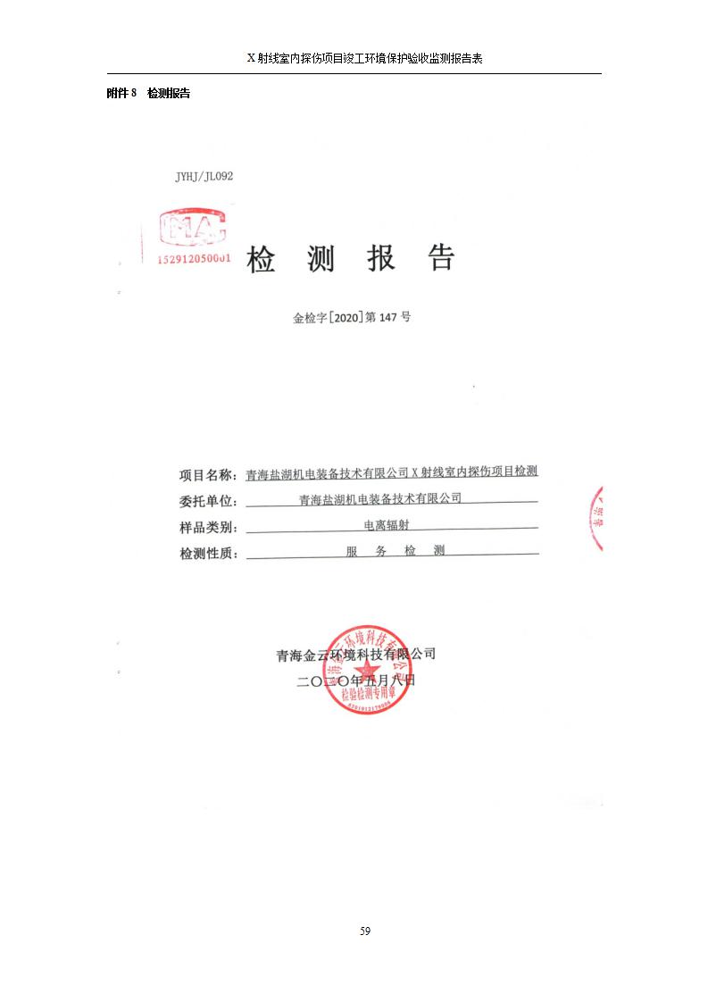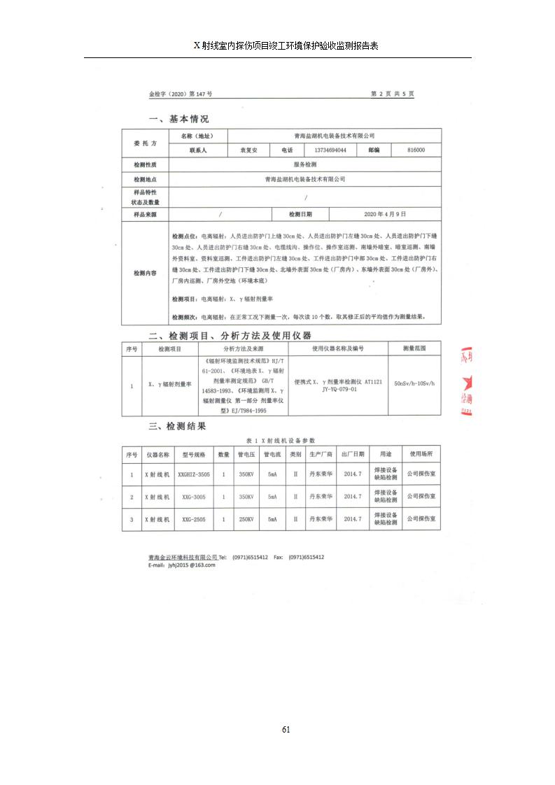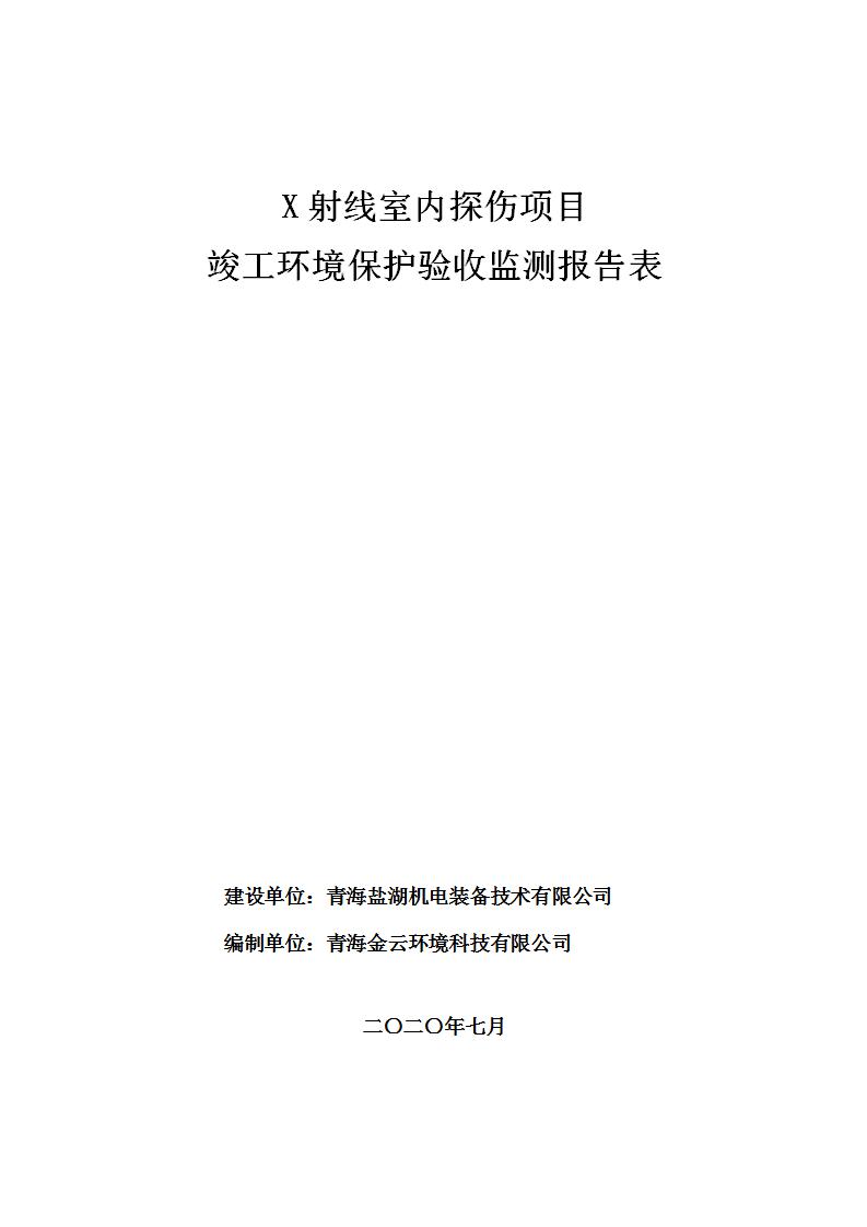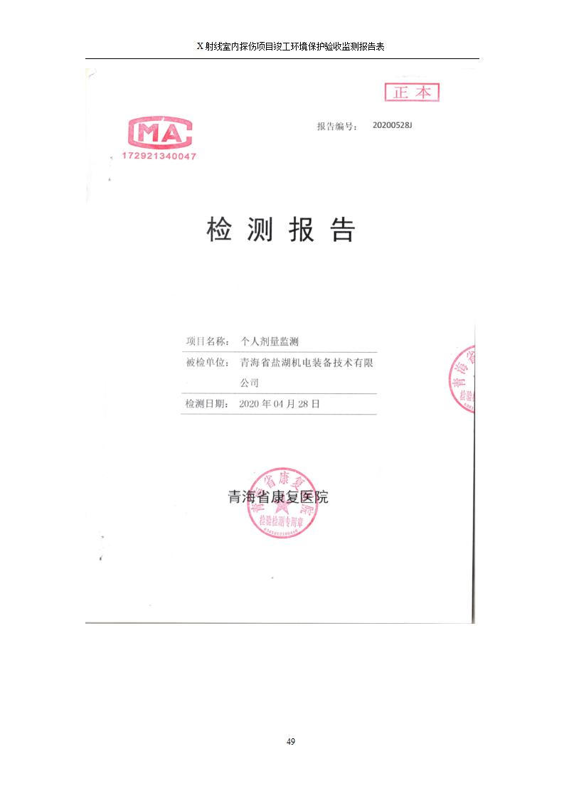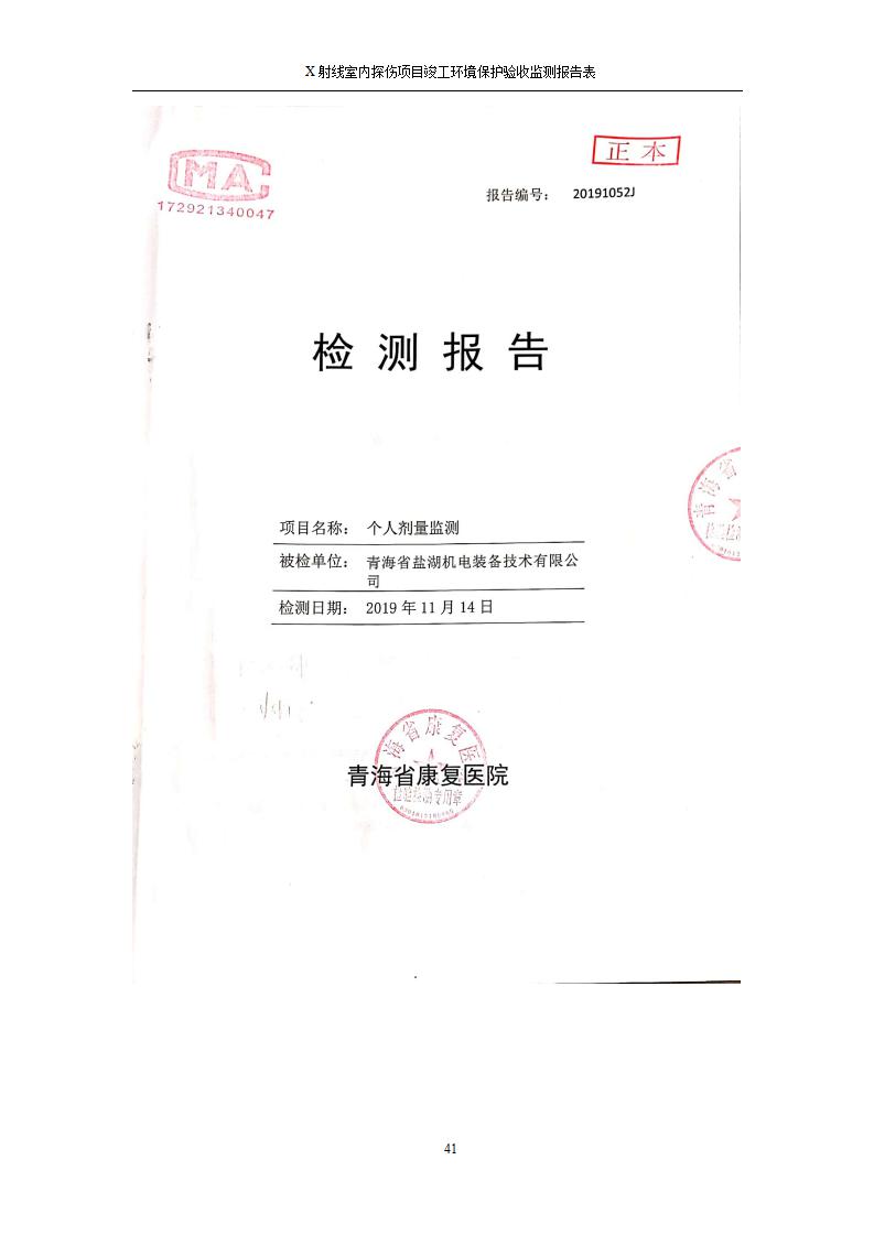 青海鹽湖機電裝備技術(shù)有限公司X射線室內(nèi)探傷項目竣工環(huán)境保護驗收監(jiān)測報告表公示發(fā)布日期:(2020-7-10) 點擊次數(shù):3143 |