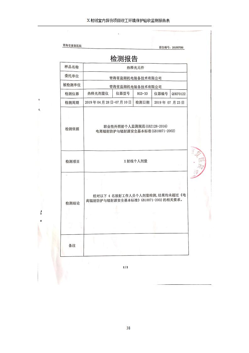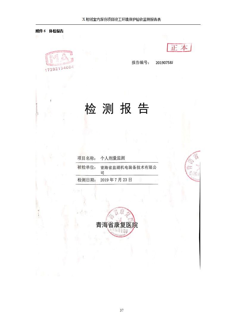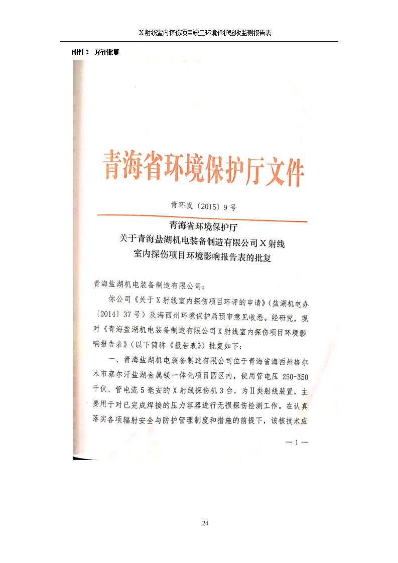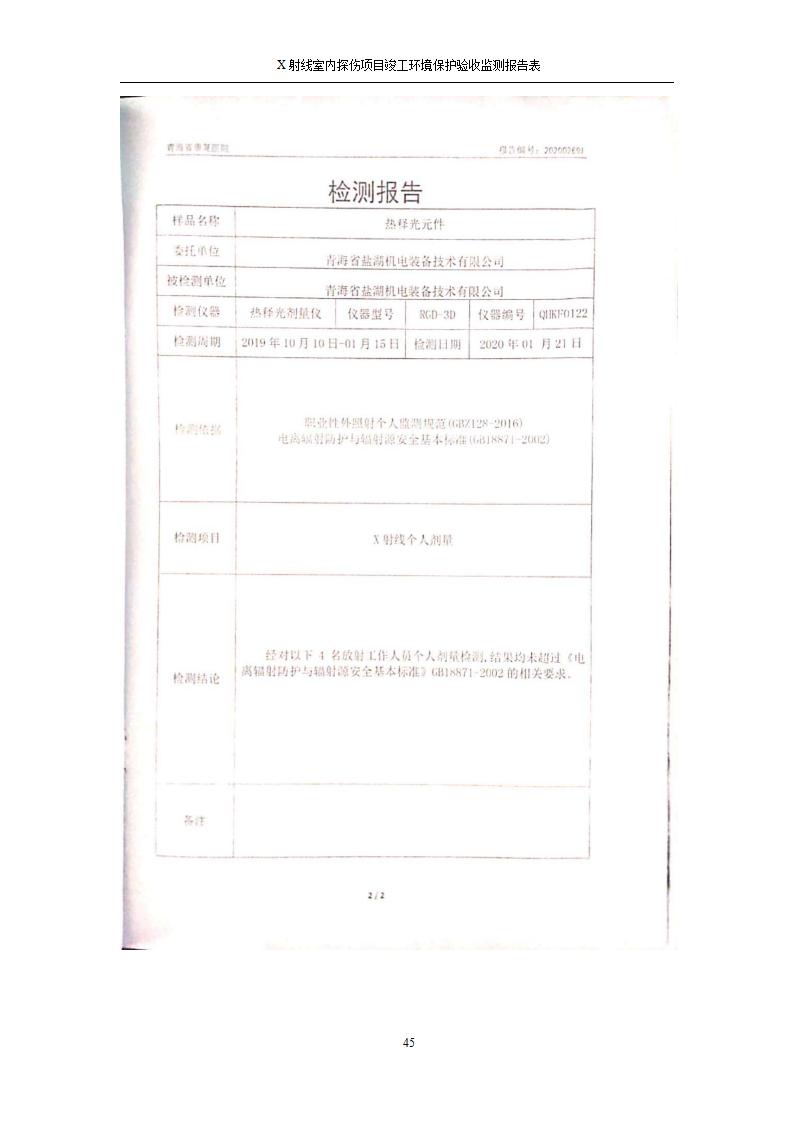 青海鹽湖機電裝備技術(shù)有限公司X射線室內(nèi)探傷項目竣工環(huán)境保護驗收監(jiān)測報告表公示發(fā)布日期:(2020-7-10) 點擊次數(shù):3143 |