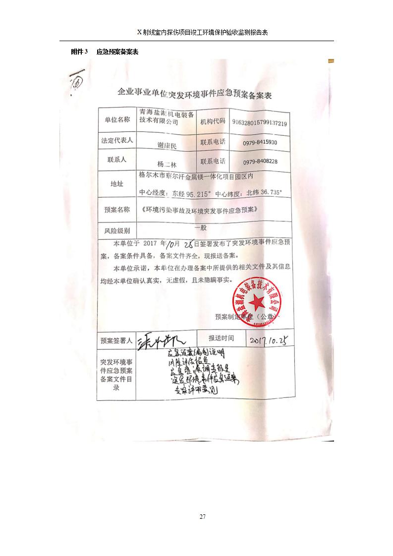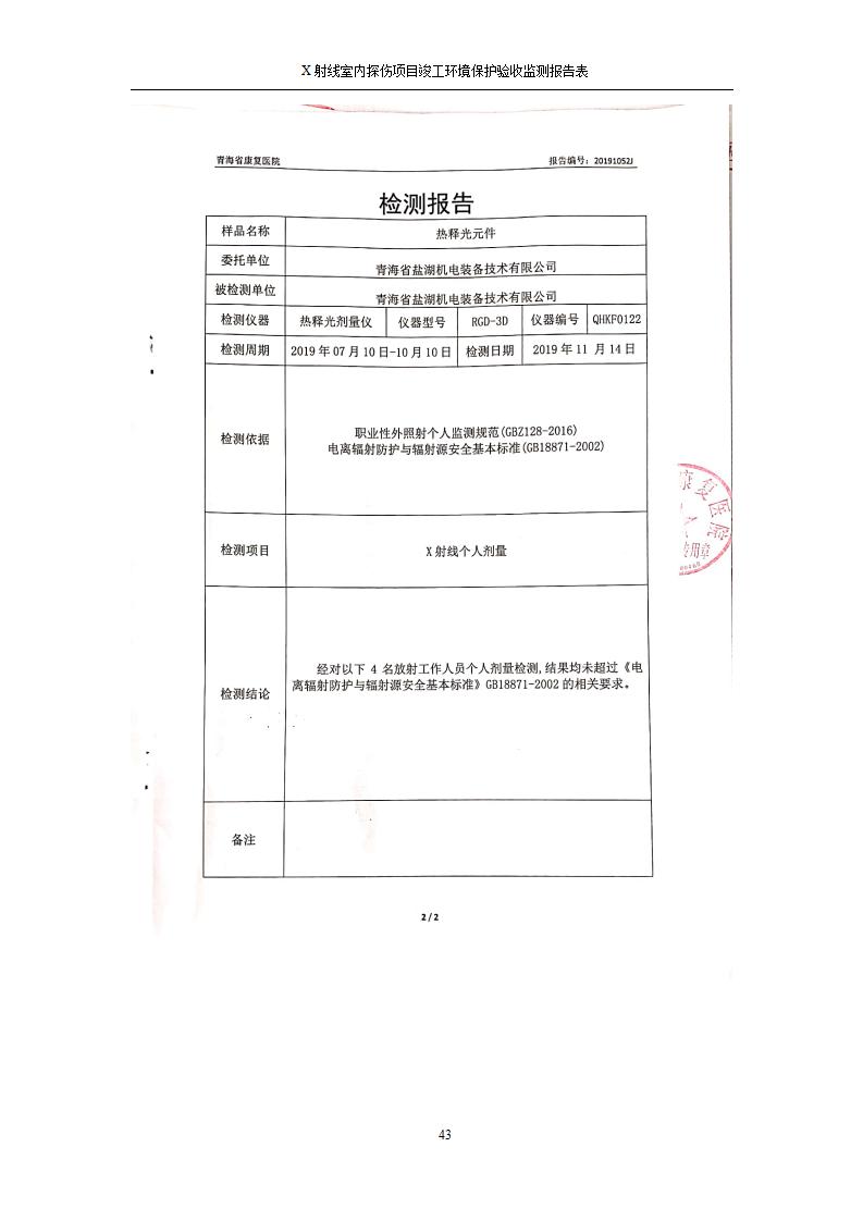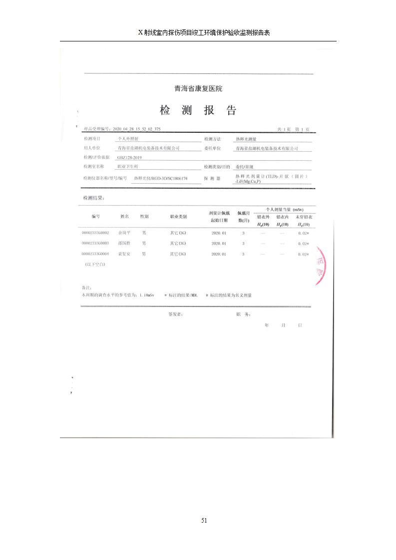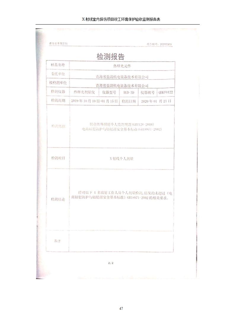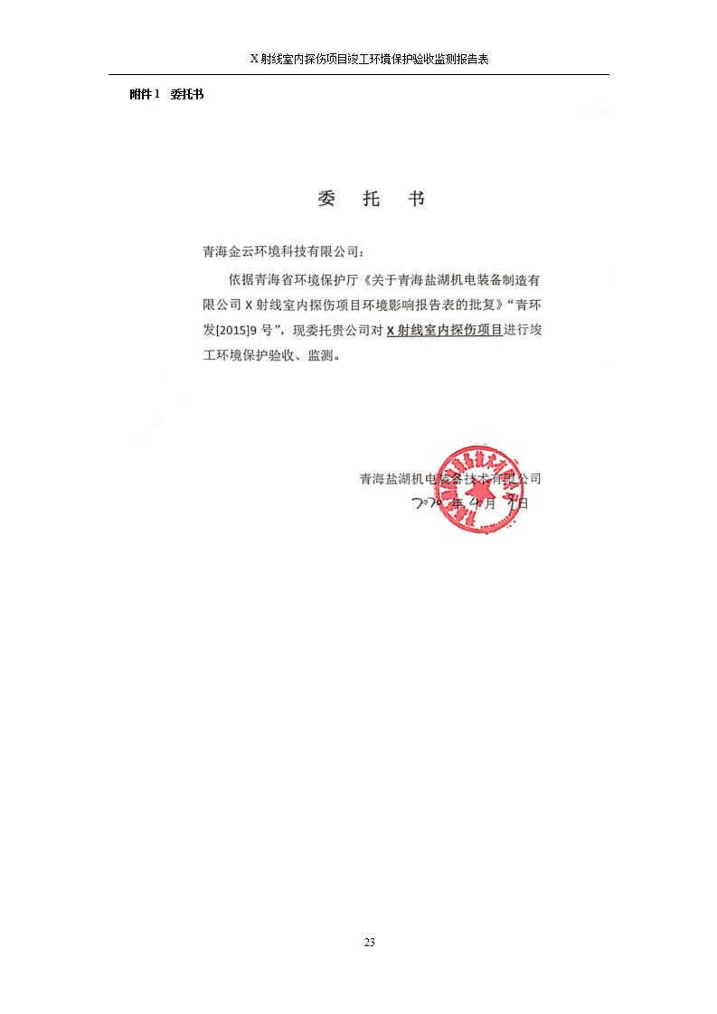 青海鹽湖機電裝備技術(shù)有限公司X射線室內(nèi)探傷項目竣工環(huán)境保護驗收監(jiān)測報告表公示發(fā)布日期:(2020-7-10) 點擊次數(shù):3143 |