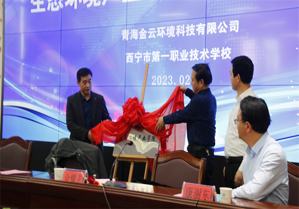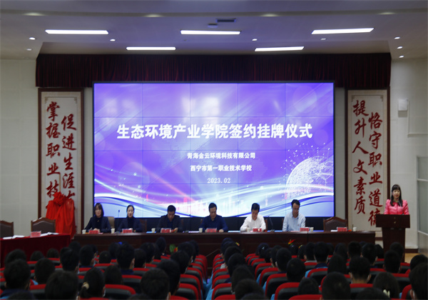 為深入貫徹落實職業(yè)教育現(xiàn)場推進會精神,深化產(chǎn)教融合校企合作,2023年2月23日,西寧市第一職業(yè)技術(shù)學(xué)校與青海金云環(huán)境科技有限公司隆重舉行校企生態(tài)環(huán)境產(chǎn)業(yè)學(xué)院簽約掛牌儀式。西寧市教育局領(lǐng)導(dǎo),西寧市第一職業(yè)技術(shù)學(xué)校領(lǐng)導(dǎo)及生態(tài)環(huán)境產(chǎn)業(yè)學(xué)院師生,金云科技高層領(lǐng)導(dǎo)出席簽約儀式。儀式由西寧第一職業(yè)技術(shù)學(xué)校黨委書記、校長金耀東主持。
